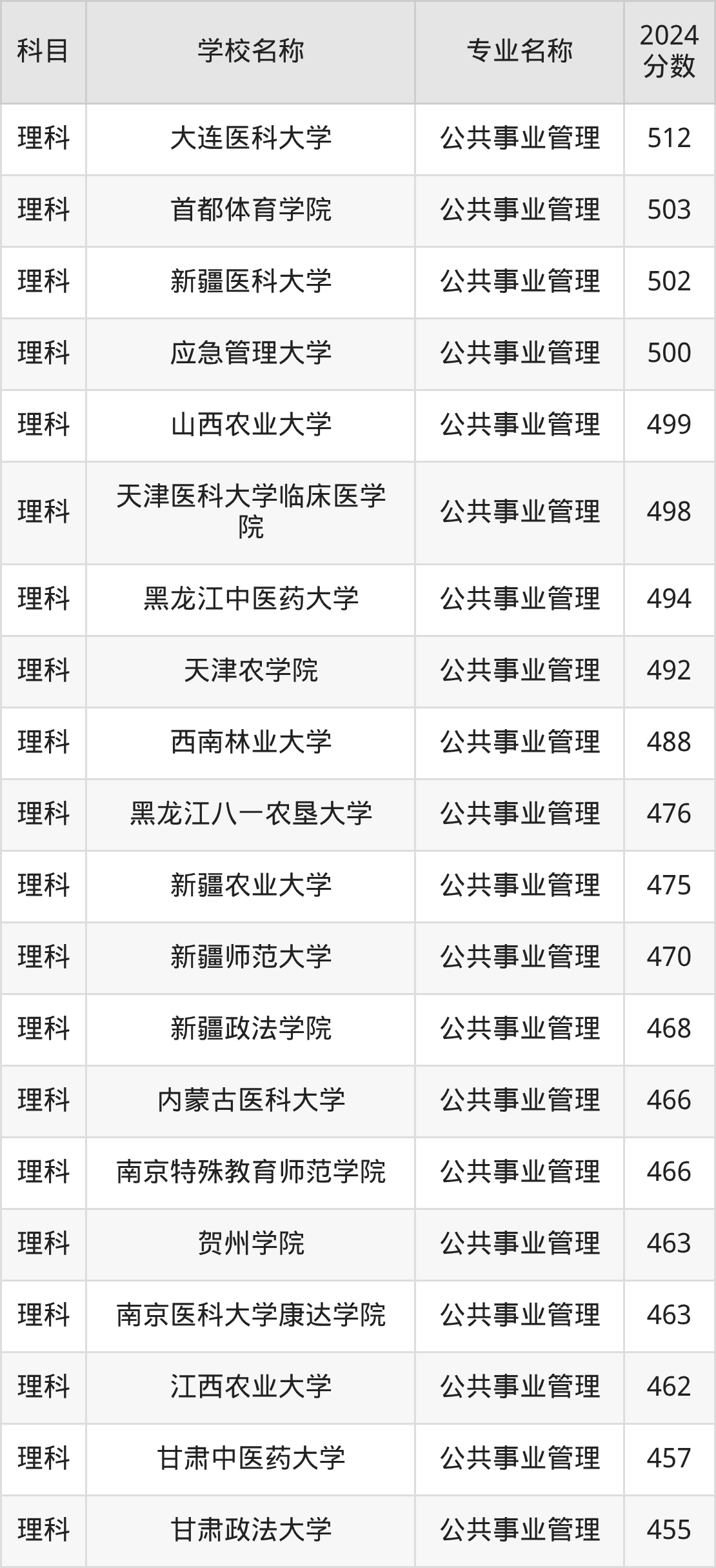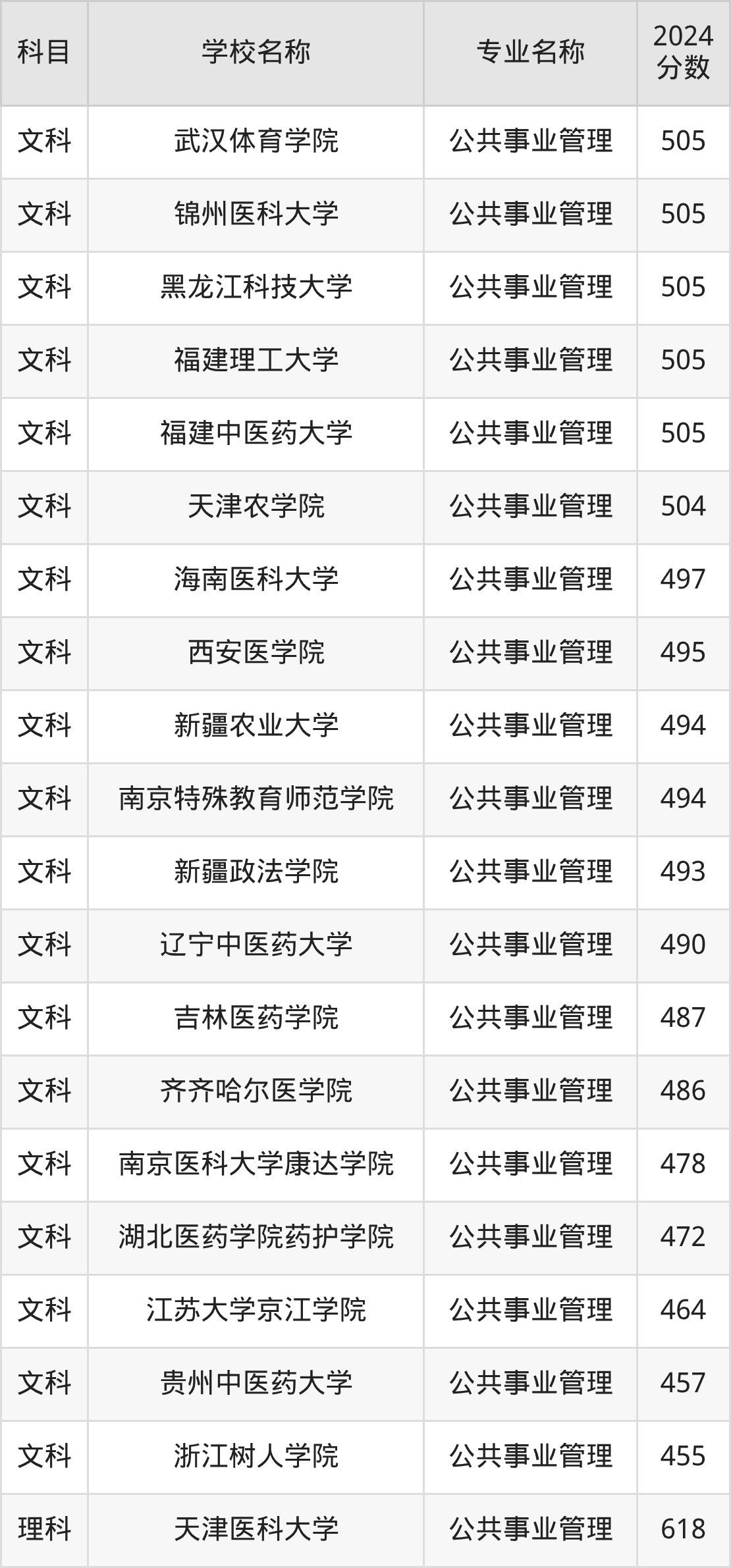 | 豫北医学院 | 公共事业管理( 医政管理) | 465 |