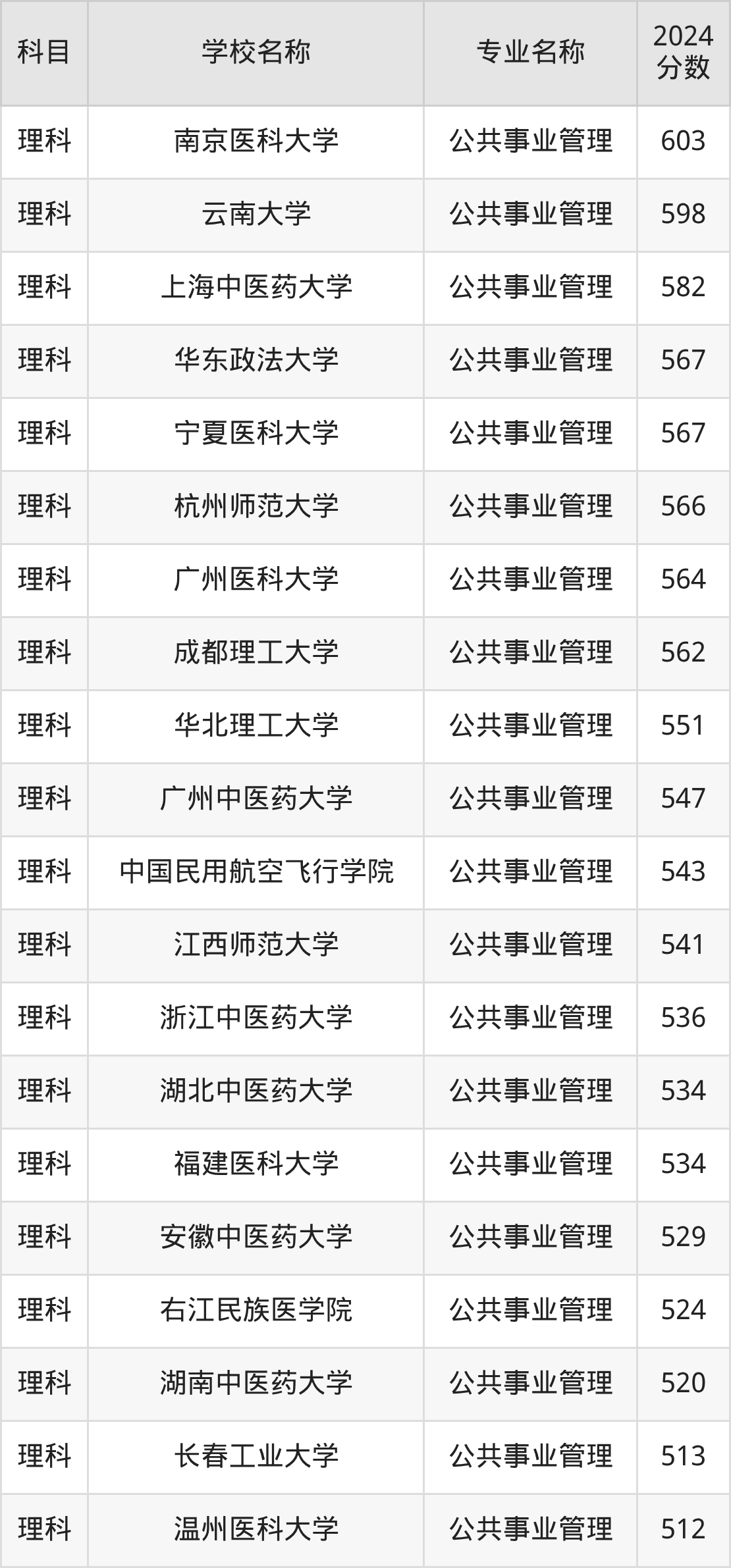 | 河南医药大学 | 公共事业管理 | 521 |