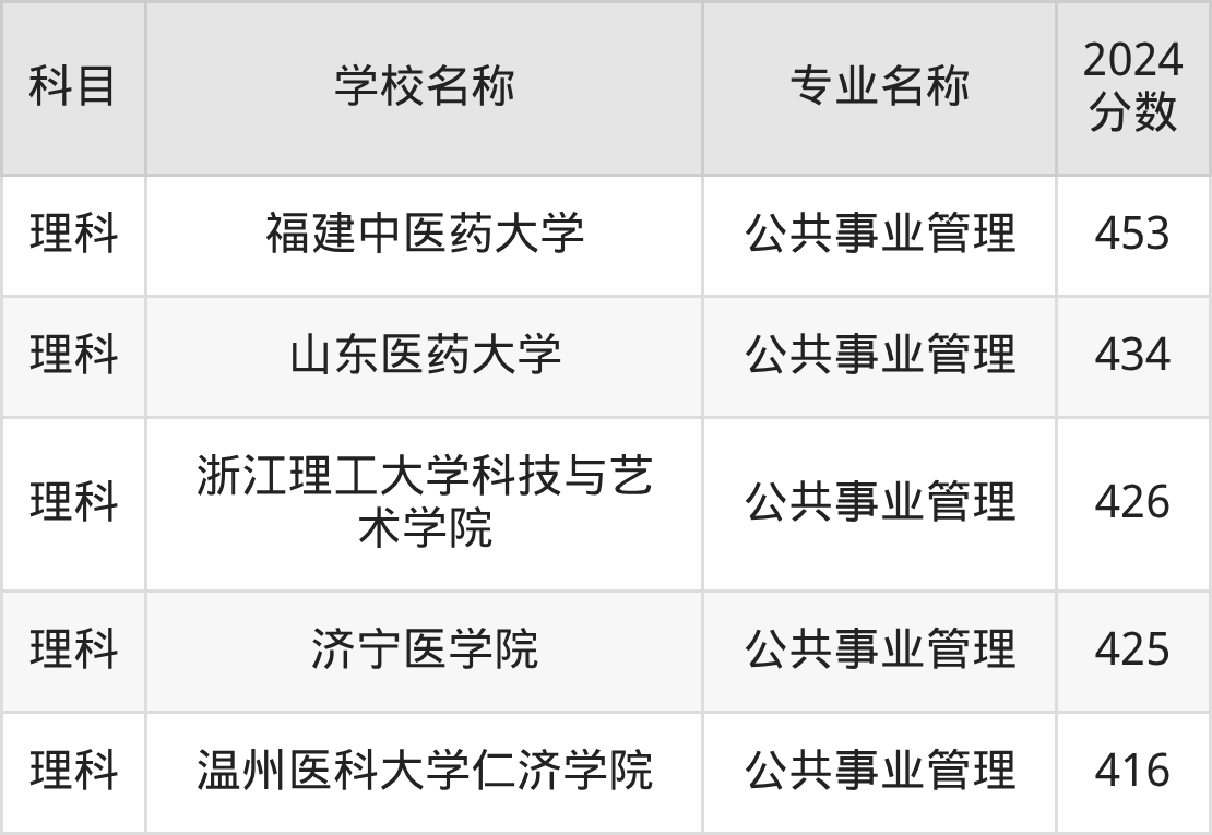 | 豫北医学院 | 公共事业管理( 卫生事业管理) | 465 |