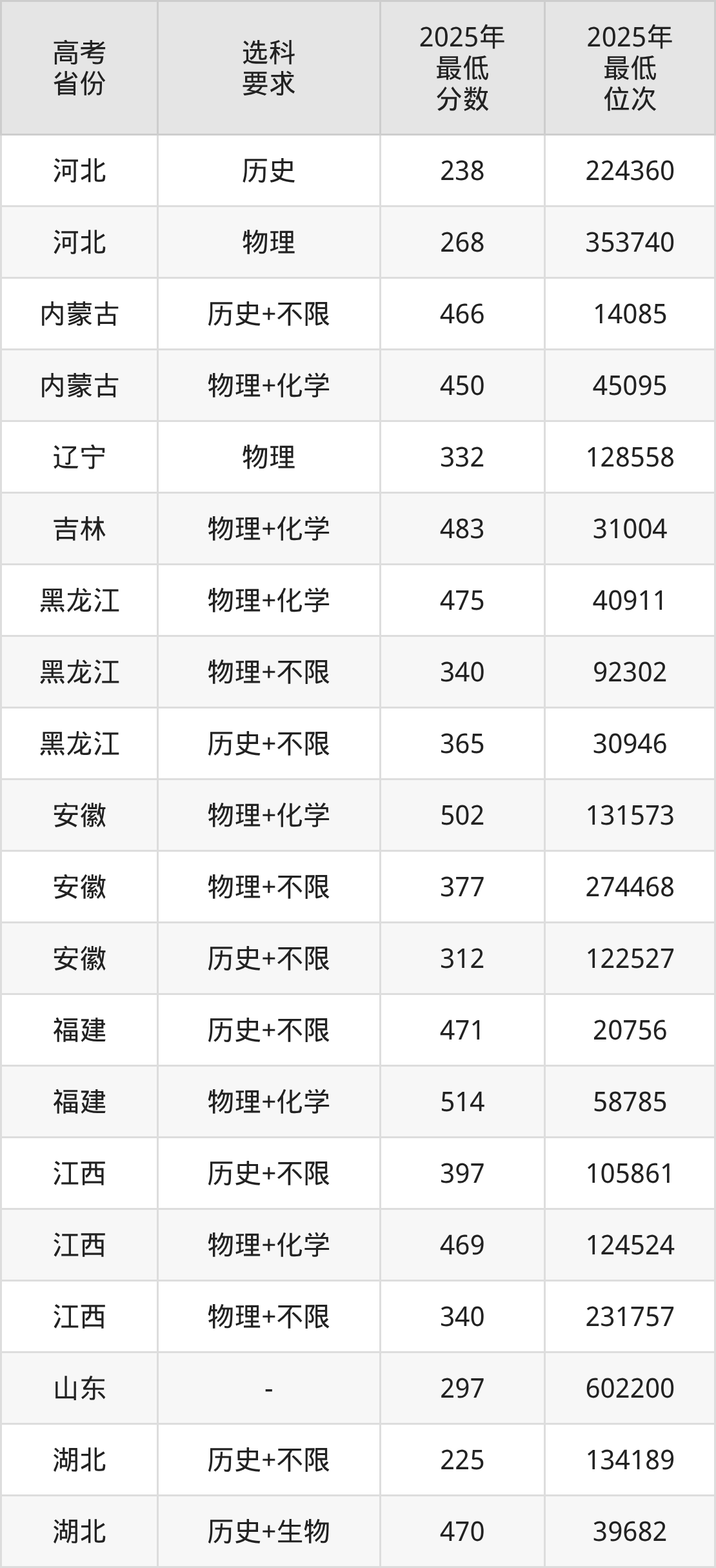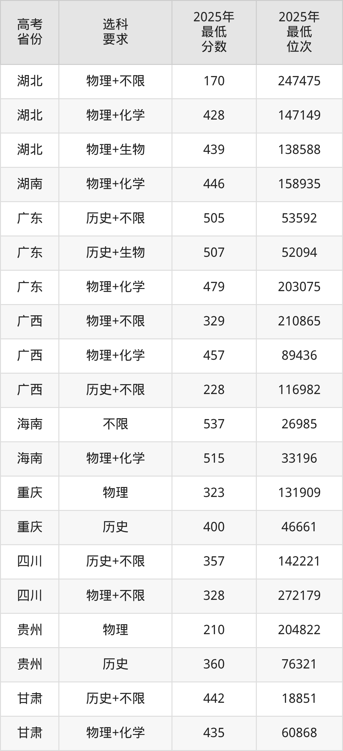 在2025年湖北高考物理类招生时,公办本科收分最低的是新疆工程学院第02组,最低分是224分、位次是243851位。再看湖北恩施学院,2025年在湖北物理类的最低录取分数线是170分,最低位次是247475位。