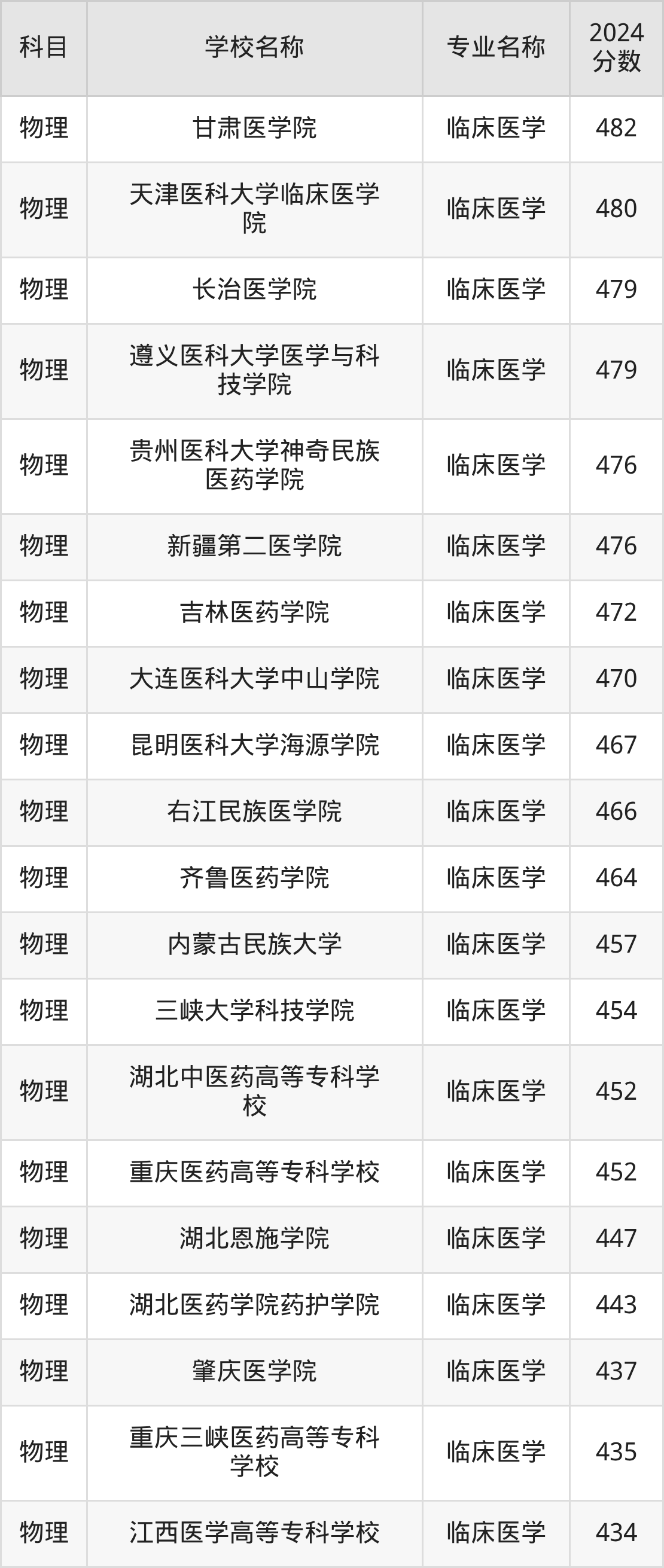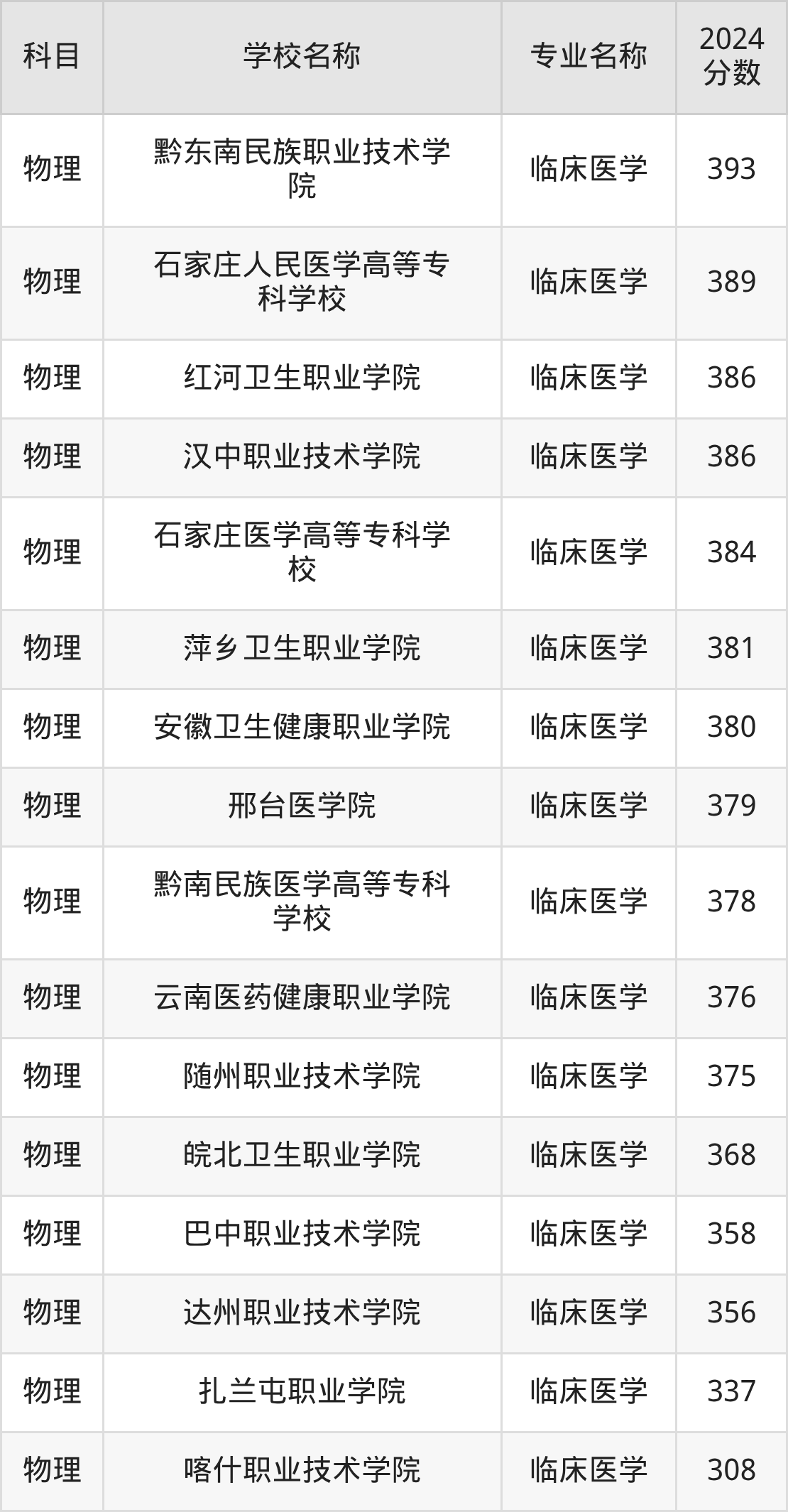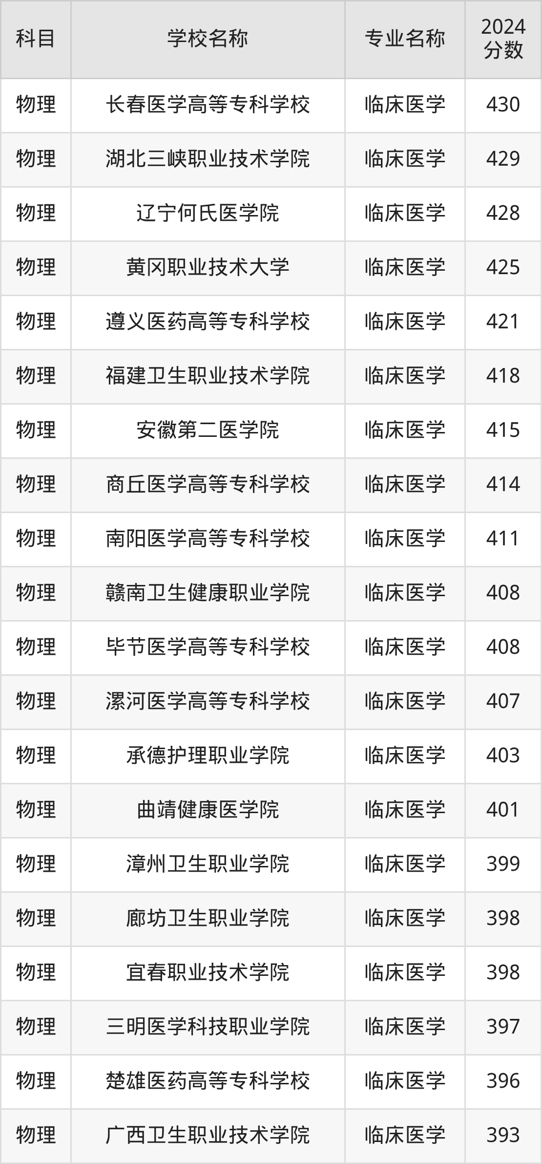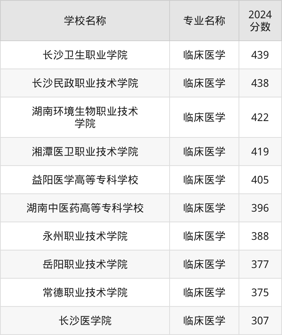 | 岳阳职业技术学院 | 临床医学 | 393 |