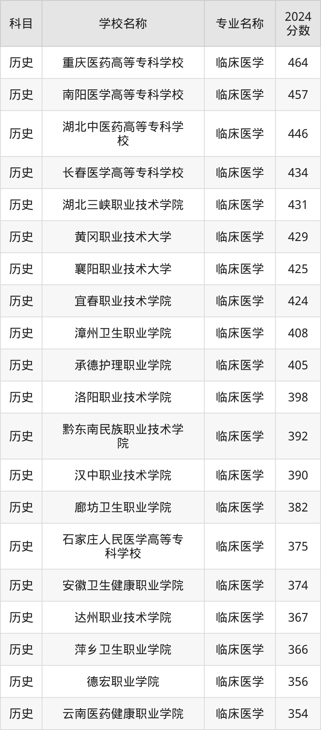 | 永州职业技术学院 | 临床医学 | 386 |