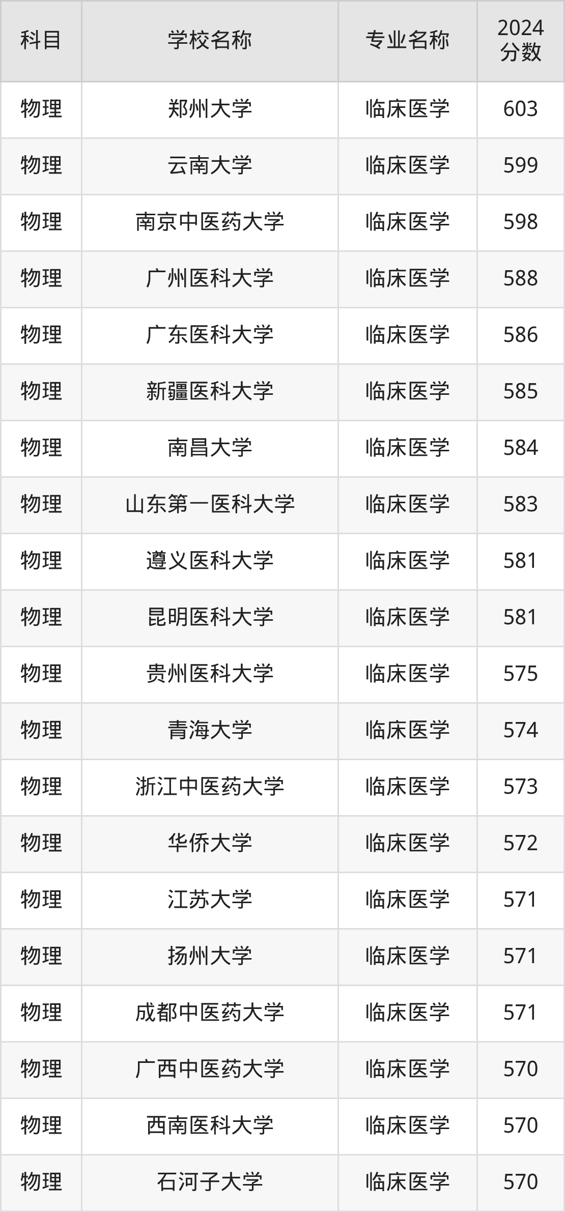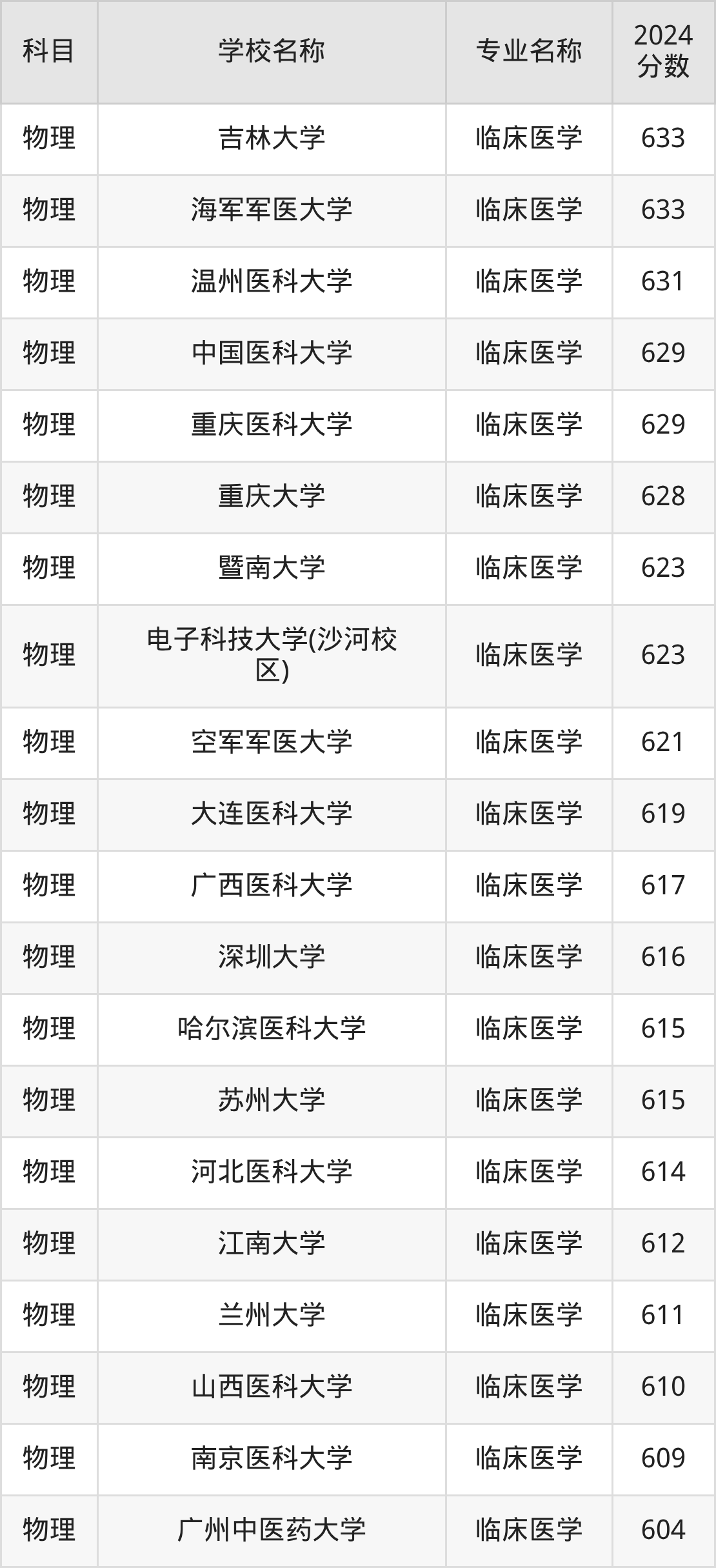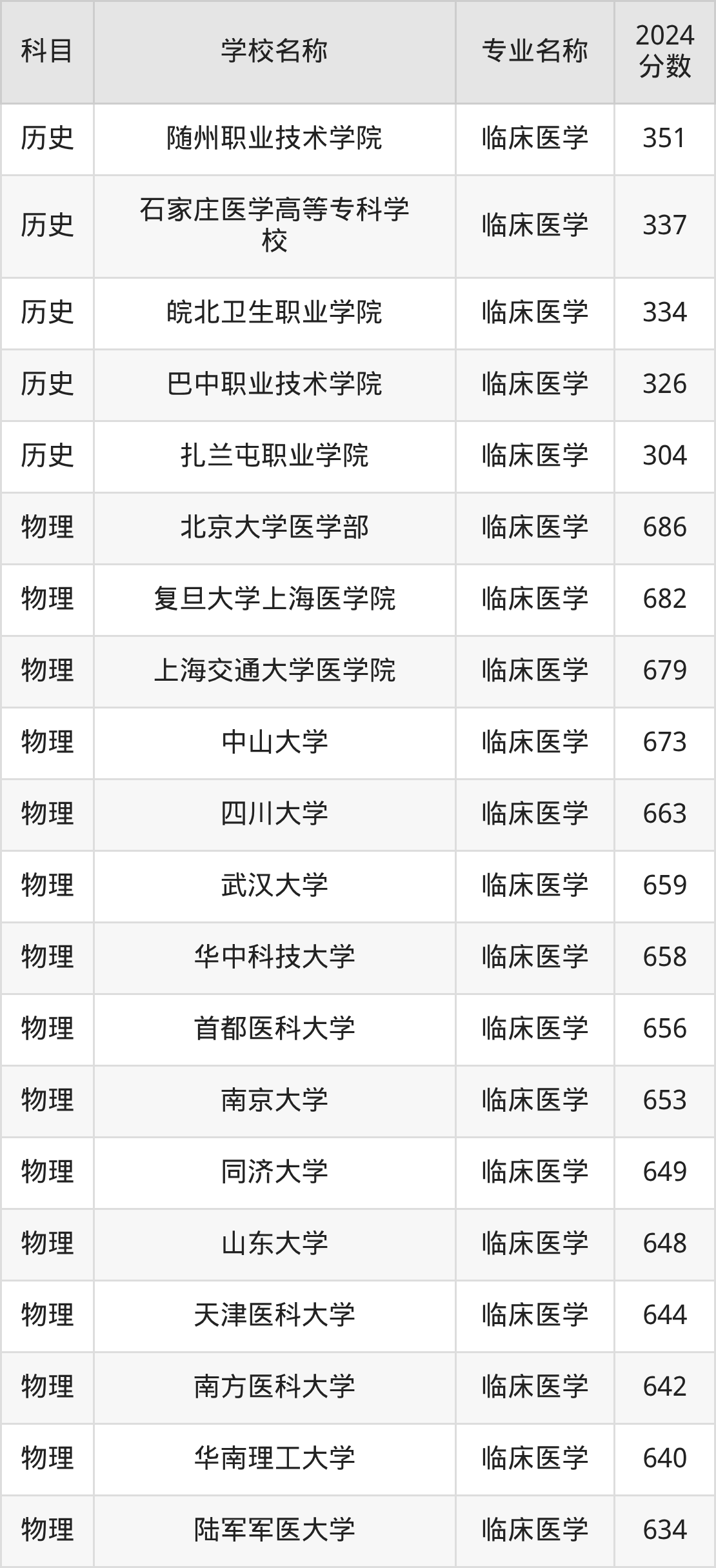 | 中南大学 | 临床医学 | 666 |