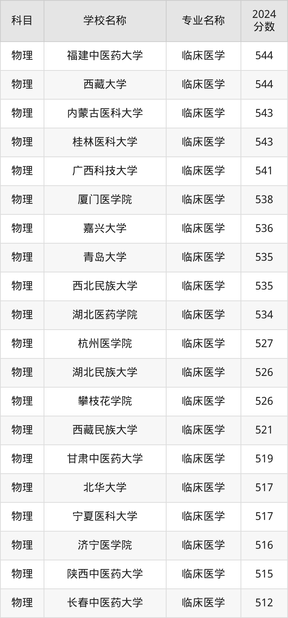 | 湘南学院 | 临床医学 | 505 |