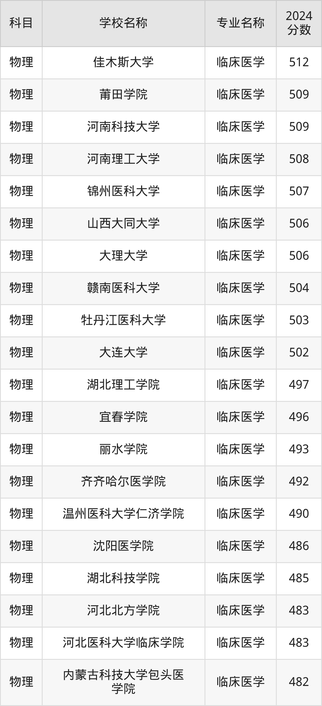 | 学校名称 | 专业名称 | 2024 分数 |