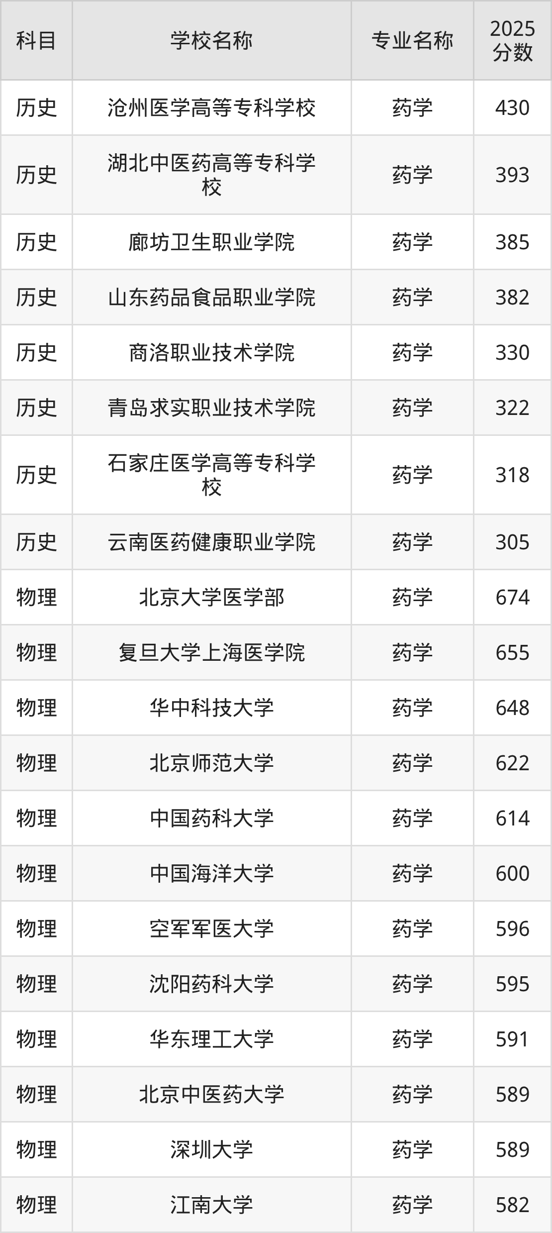 下文将为大家展示吉林省大学药学专业2025年在吉林高考的最低录取分数线!
