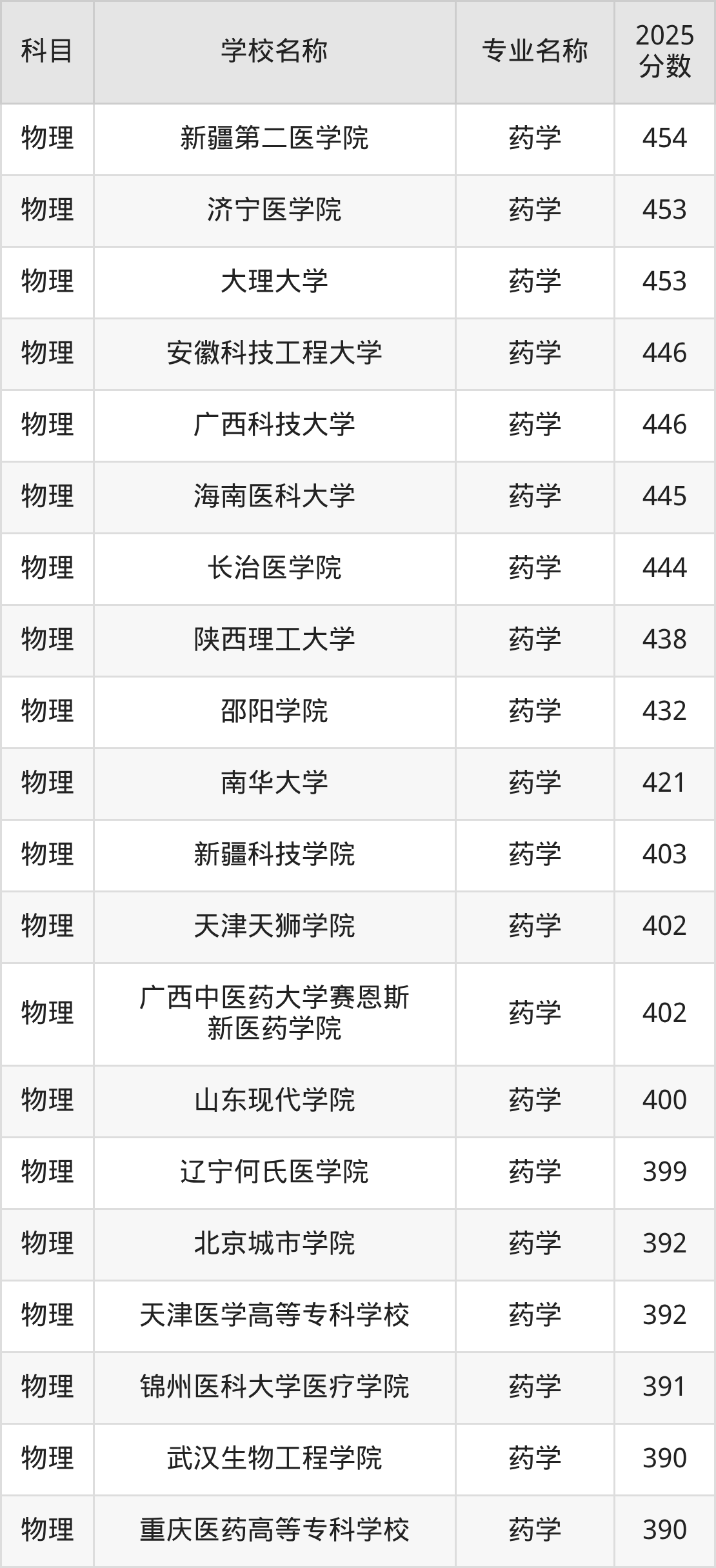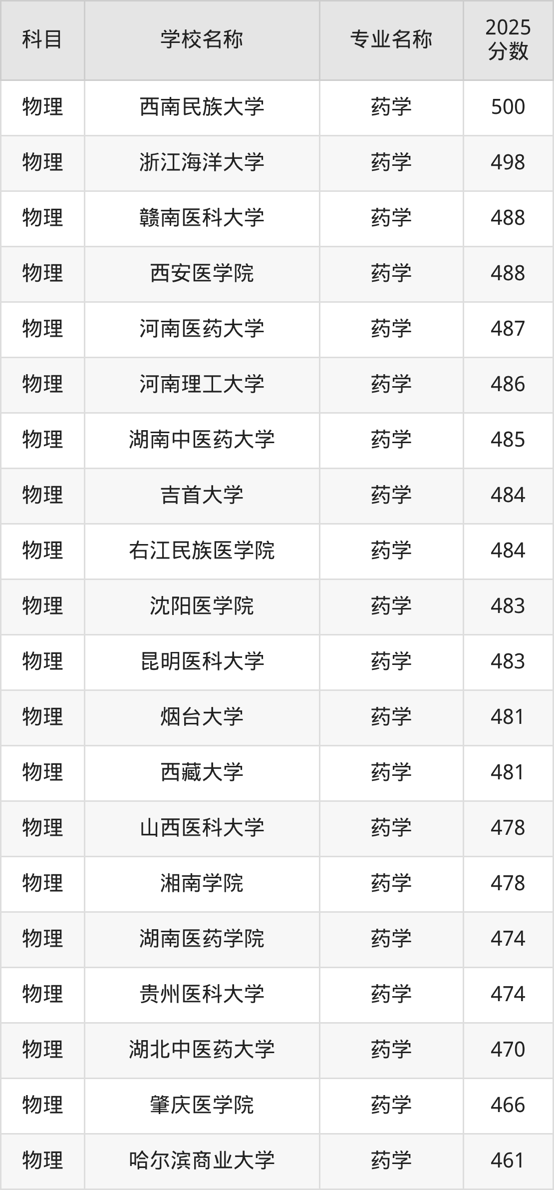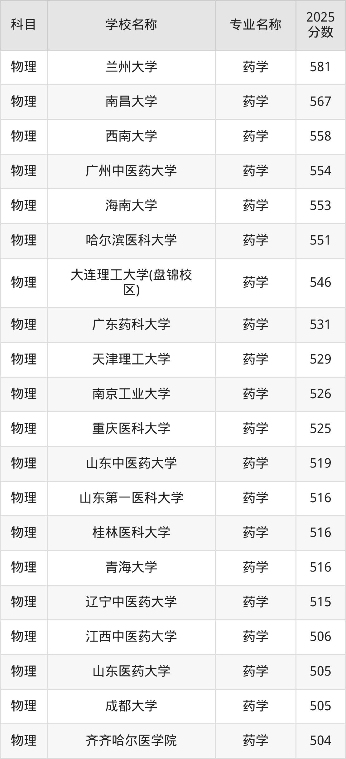 圆梦小编根据吉林2025年高考物理组专业分,将开设了药学专业且位于吉林省内的大学按照“录取分”从高到低排序,得出了以上榜单。