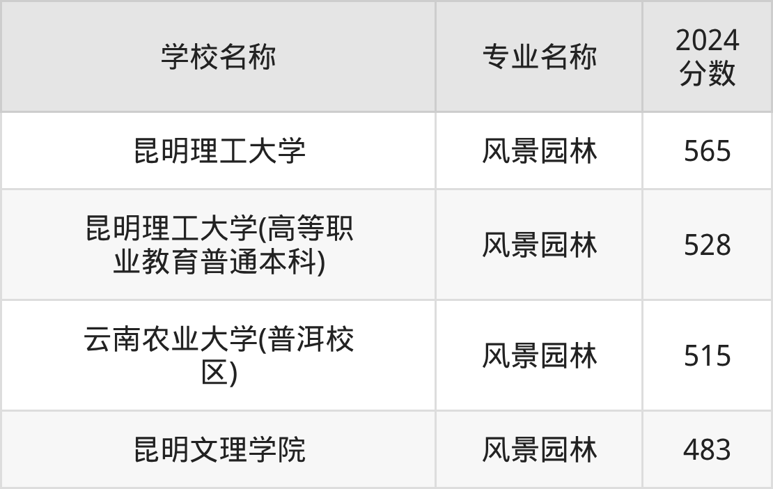 下文将为大家展示云南省大学风景园林专业2024年在云南高考的最低录取分数线!