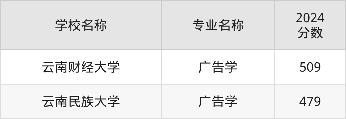 下文将为大家展示云南省大学广告学专业2024年在云南高考的最低录取分数线!