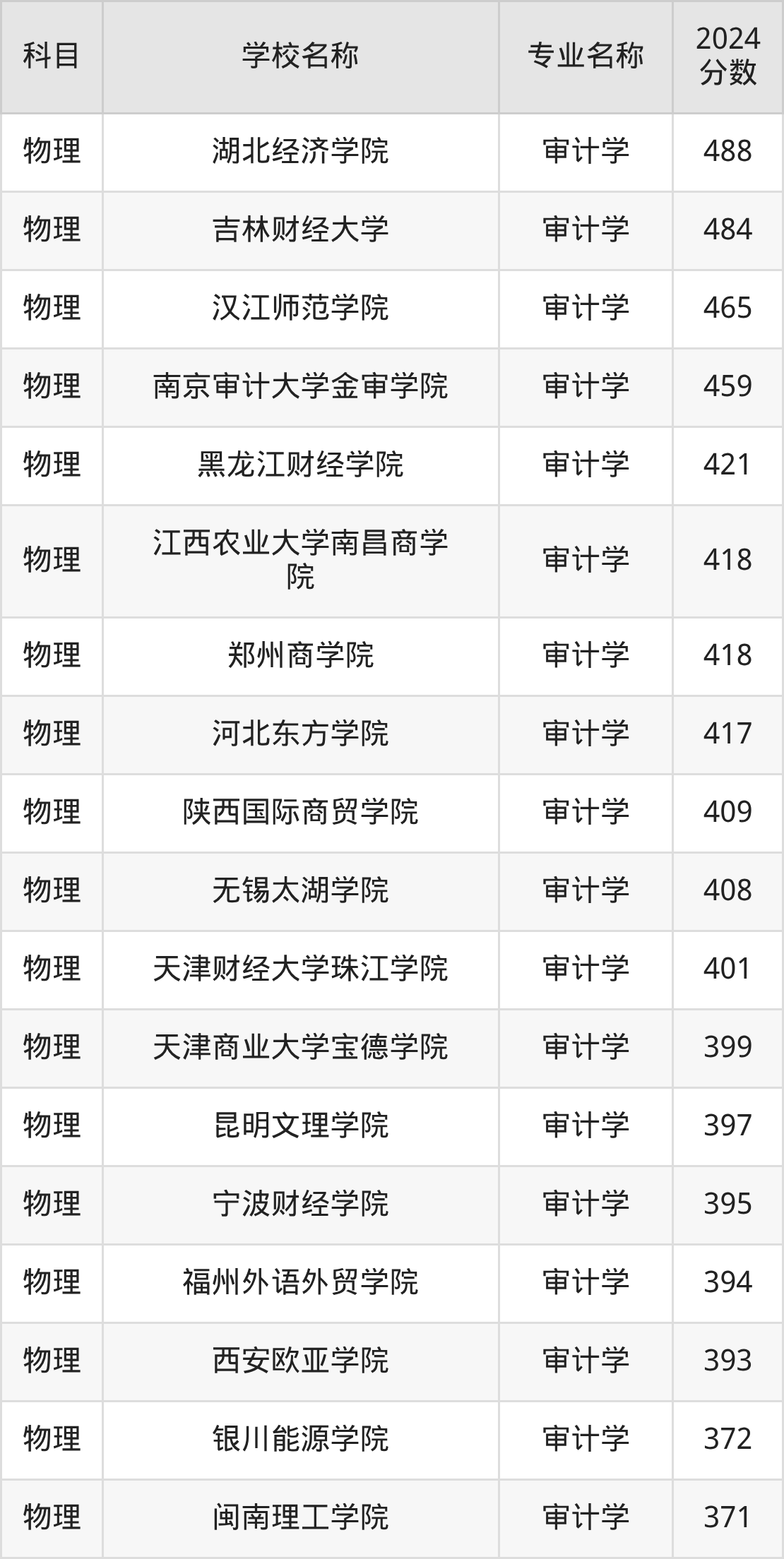 | 兰州工商学院 | 审计学 | 411 |