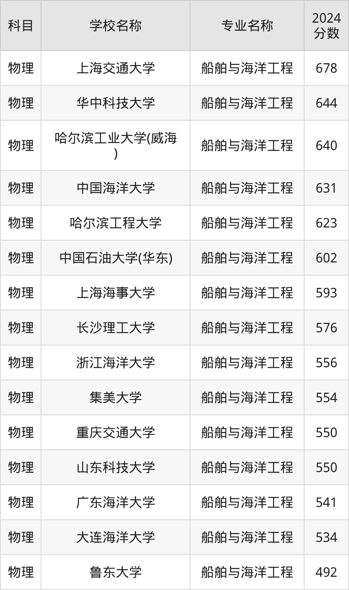 江苏高考物理组:船舶与海洋工程专业的最低分是462分~551分