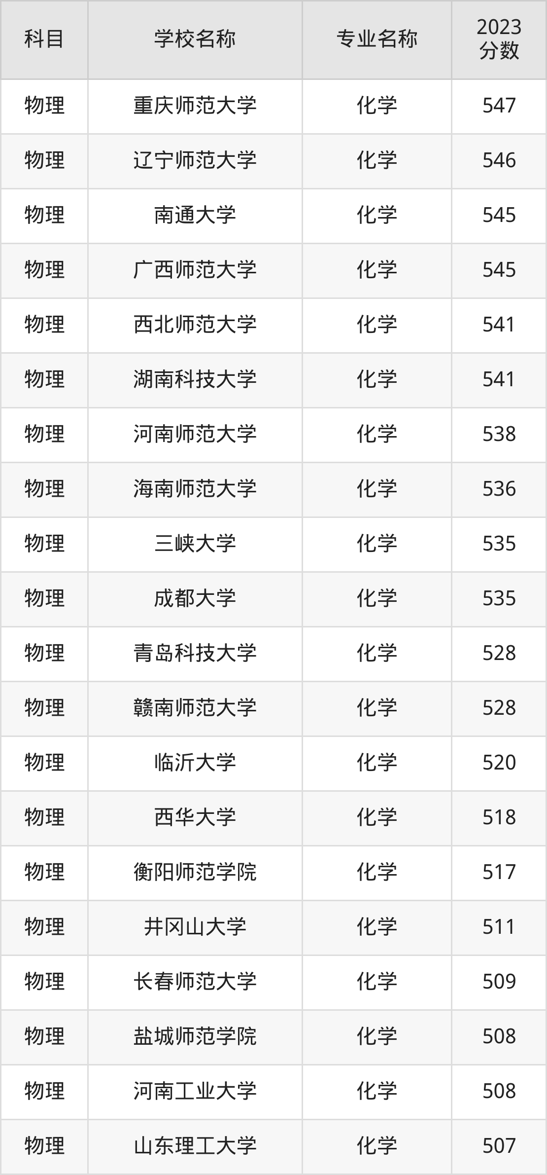 | 闽南师范大学 | 化学(师范类) | 537 |