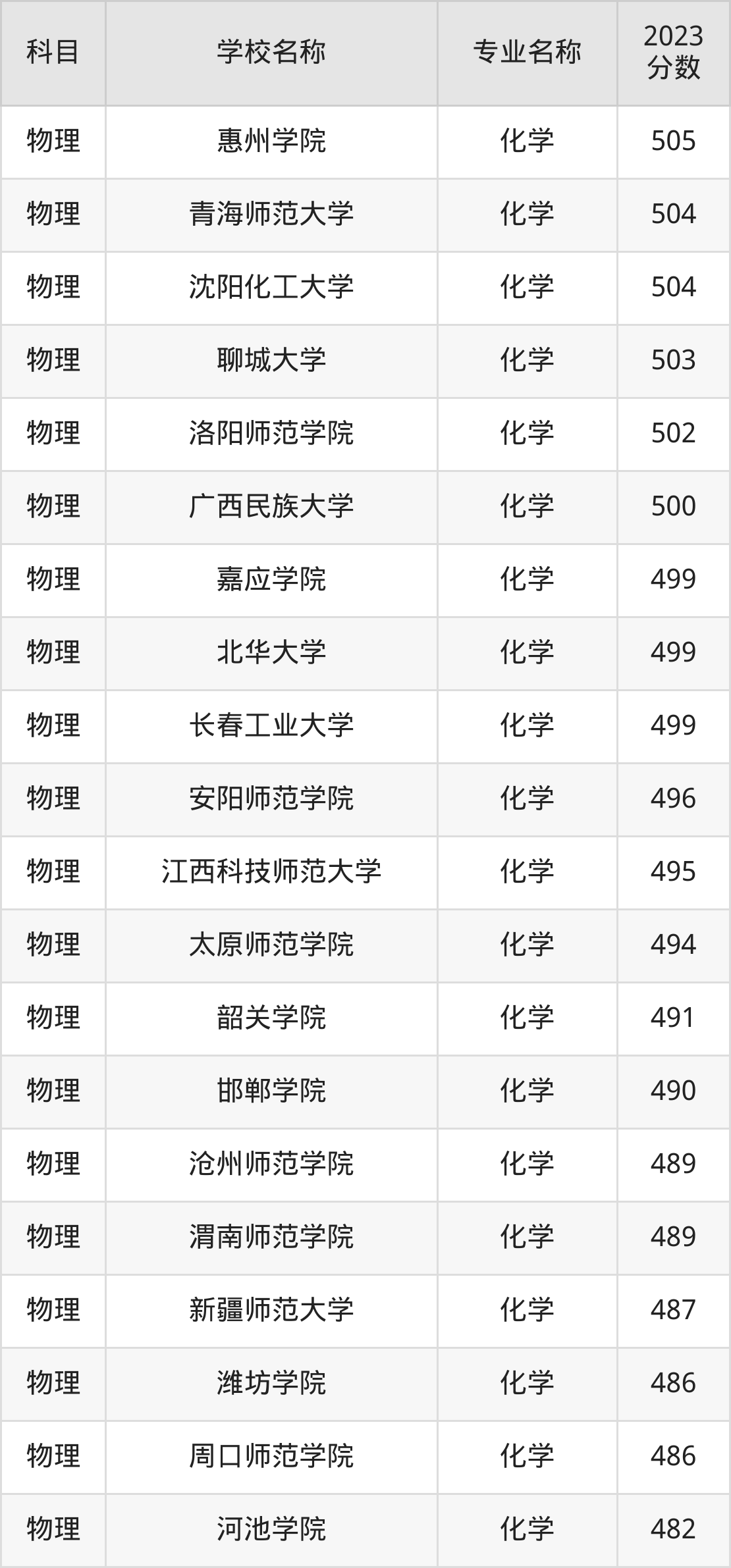 | 宁德师范学院 | 化学((面向宁 德)(师范类)) | 486 |