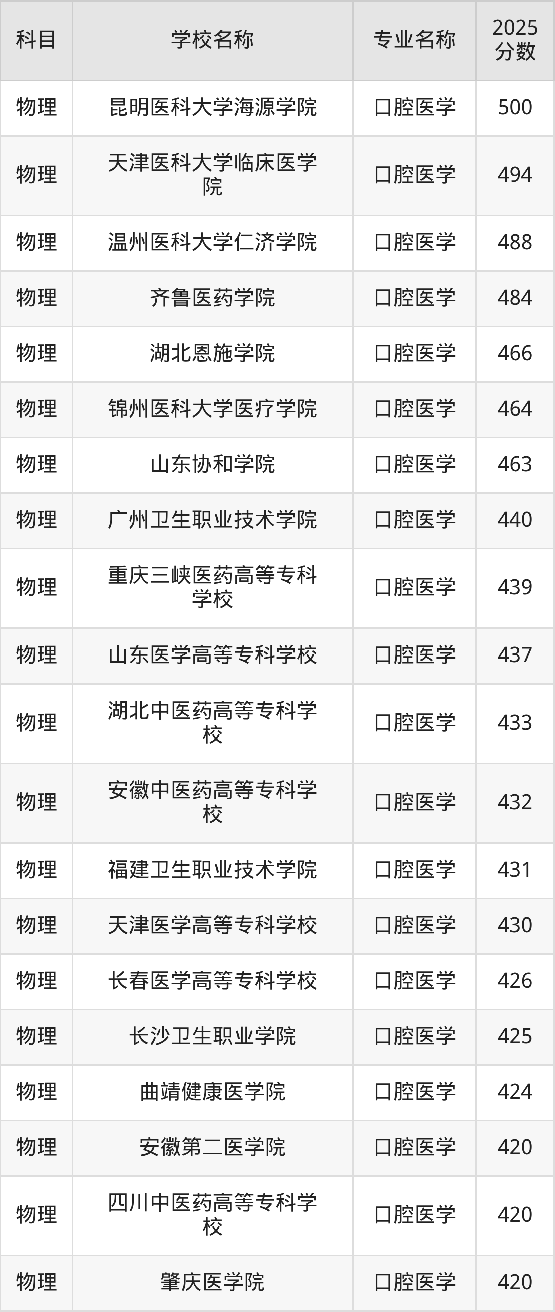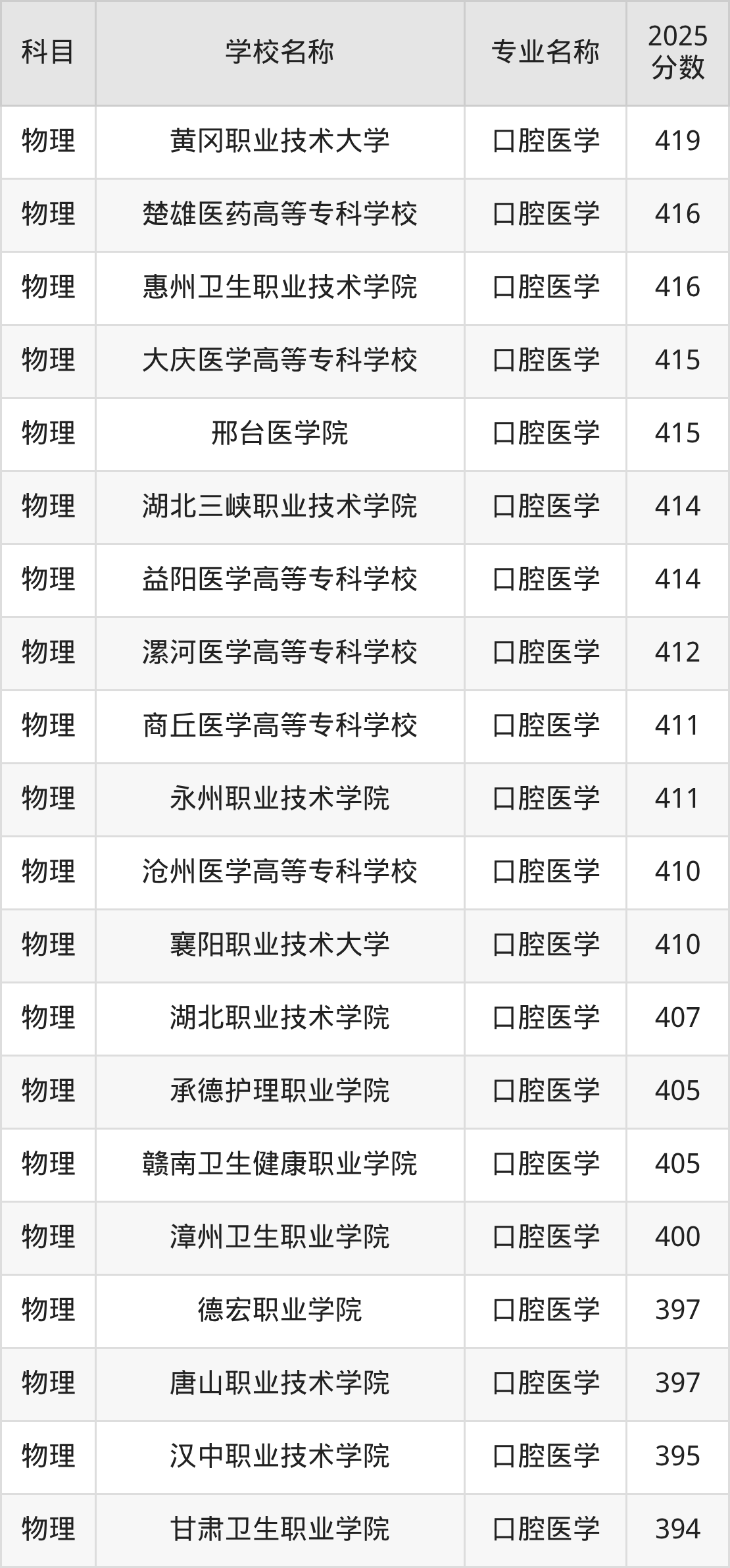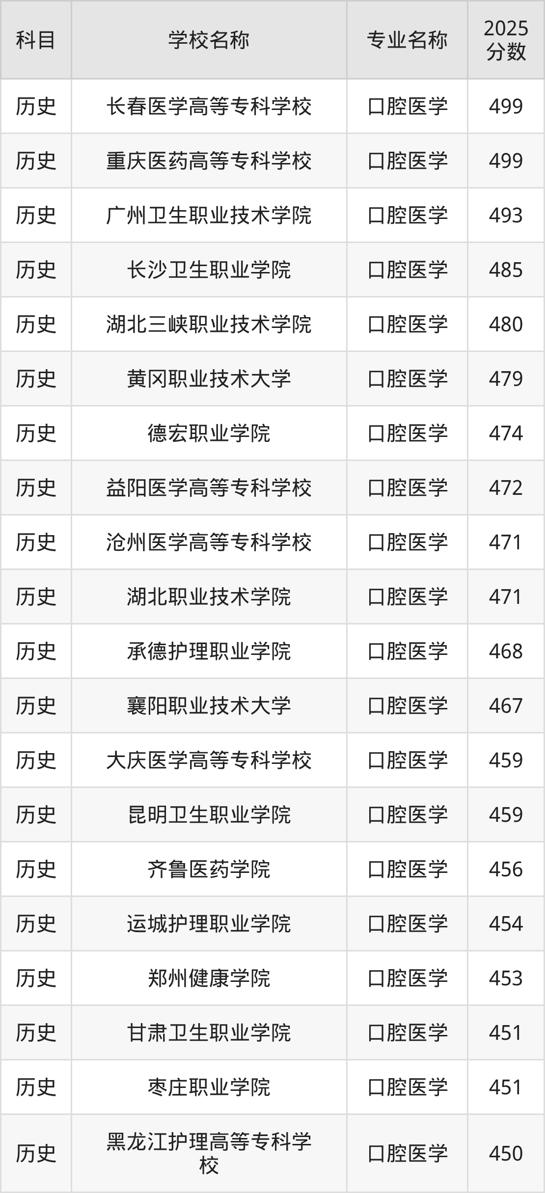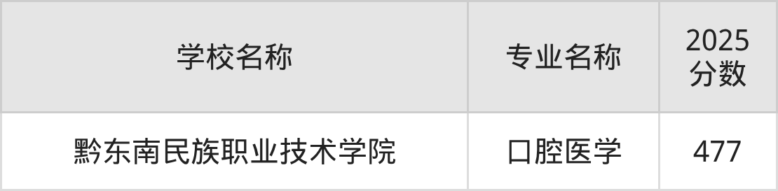 | 黔南民族医学高等专科 学校 | 口腔医学 | 396 |