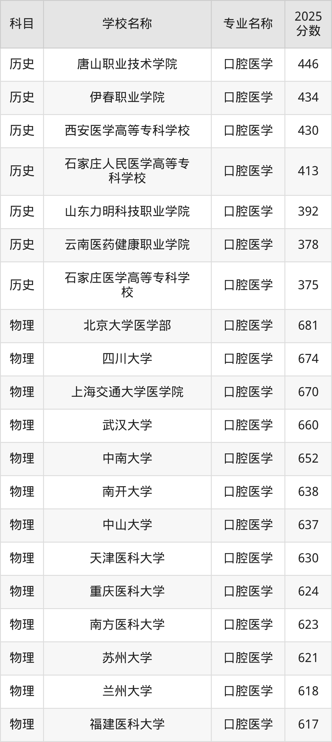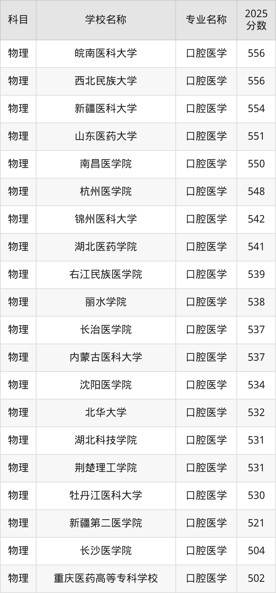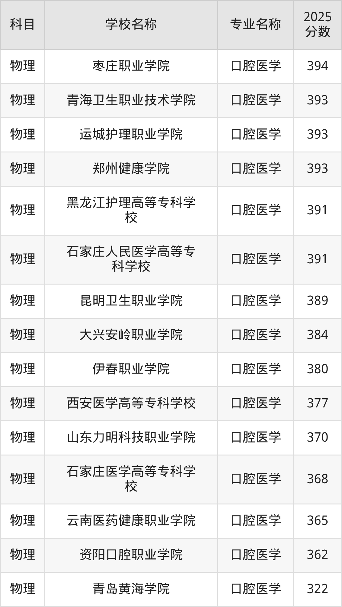 | 黔南民族医学高等专科 学校 | 口腔医学 | 396 |