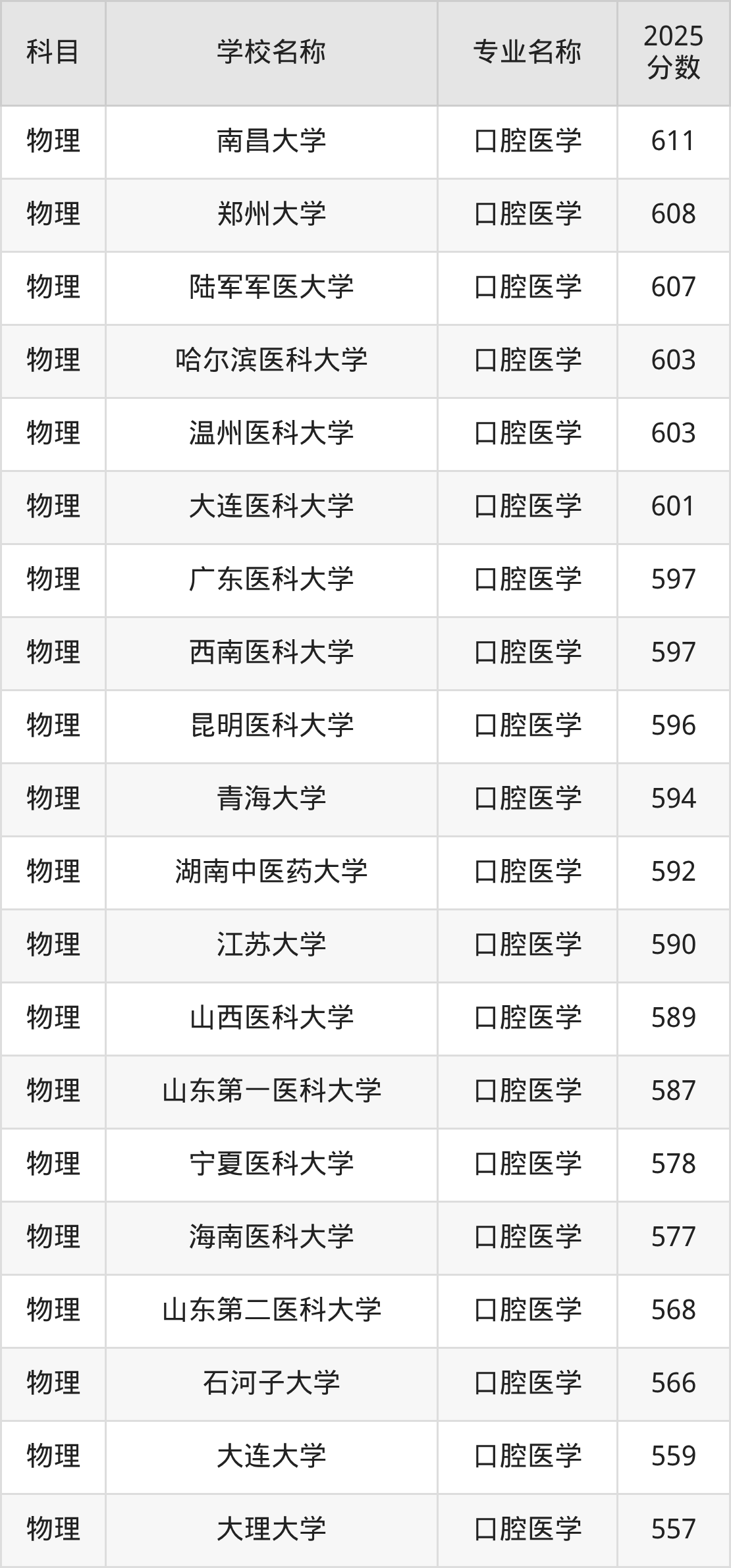 下文将为大家展示贵州省大学口腔医学专业2025年在贵州高考的最低录取分数线!