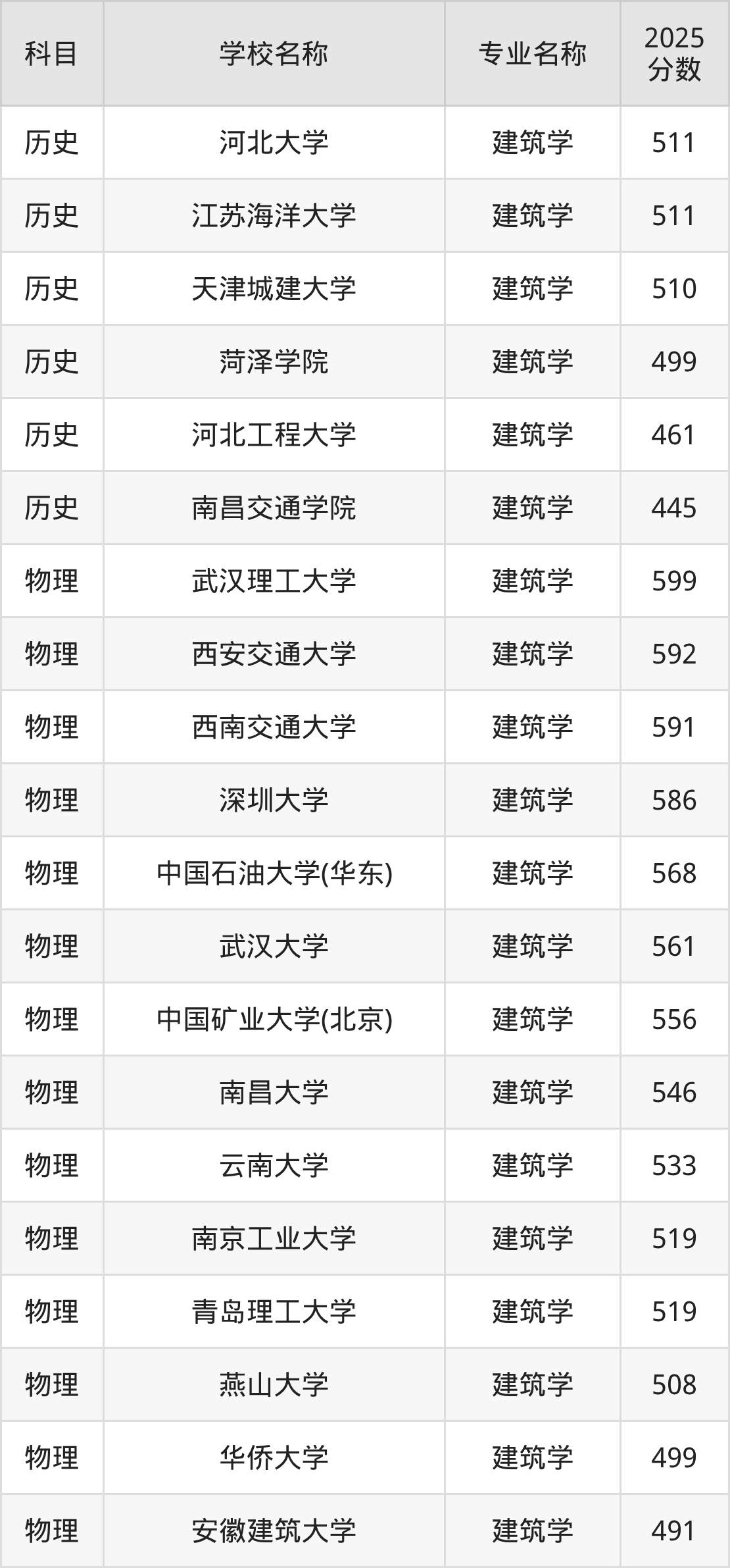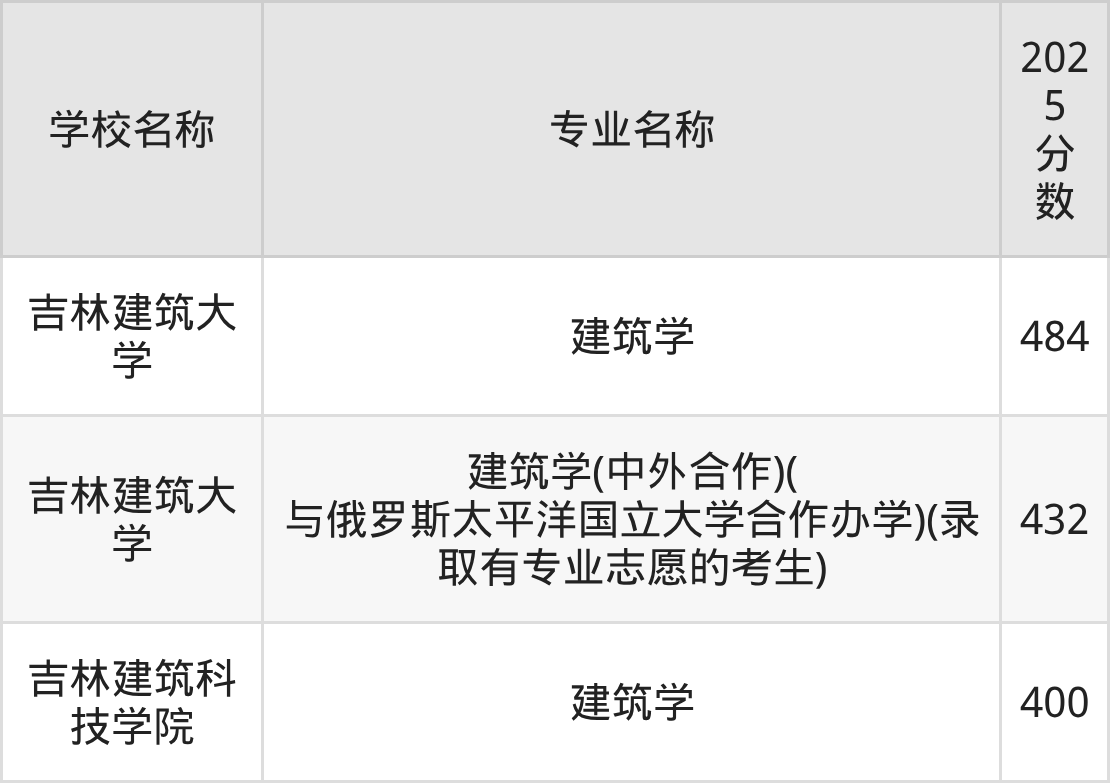 下文将为大家展示吉林省大学建筑学专业2025年在吉林高考的最低录取分数线!
