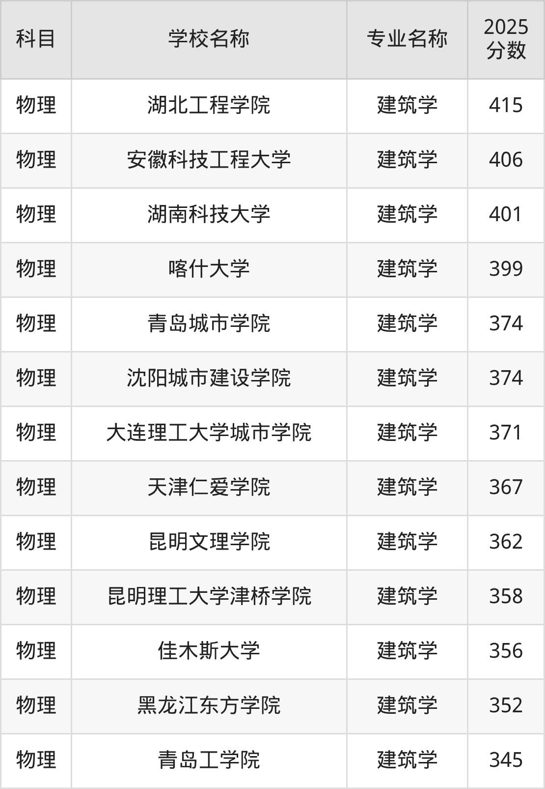 吉林高考物理组:建筑学专业的最低分是328分~433分