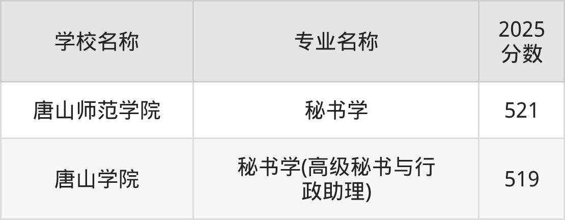 | 唐山学院 | 秘书学(高级秘 书与行政助理) | 535 |