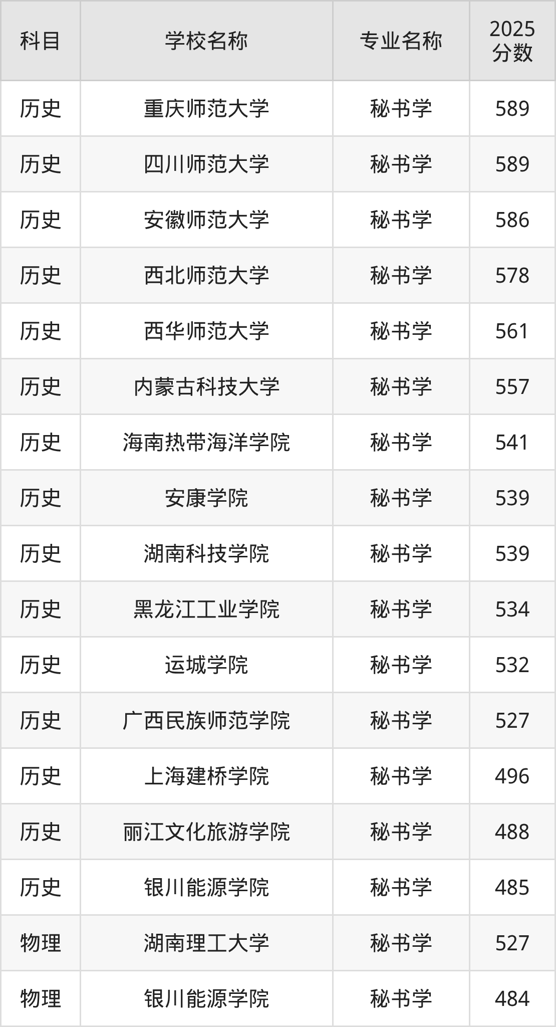 河北高考历史组:秘书学专业的最低分是534分~548分