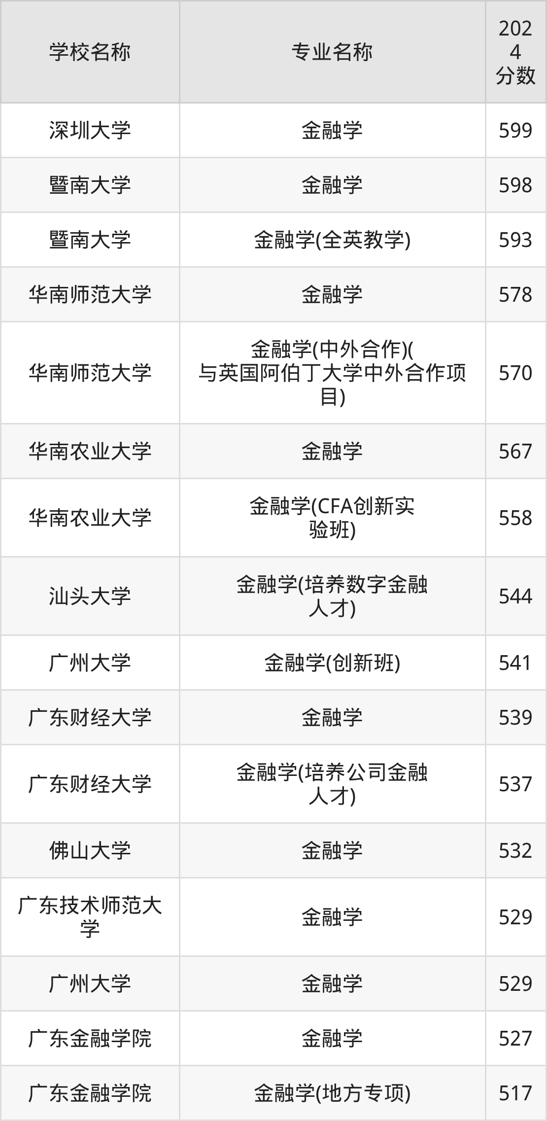 下文将为大家展示广东省大学金融学专业2024年在广东高考的最低录取分数线!