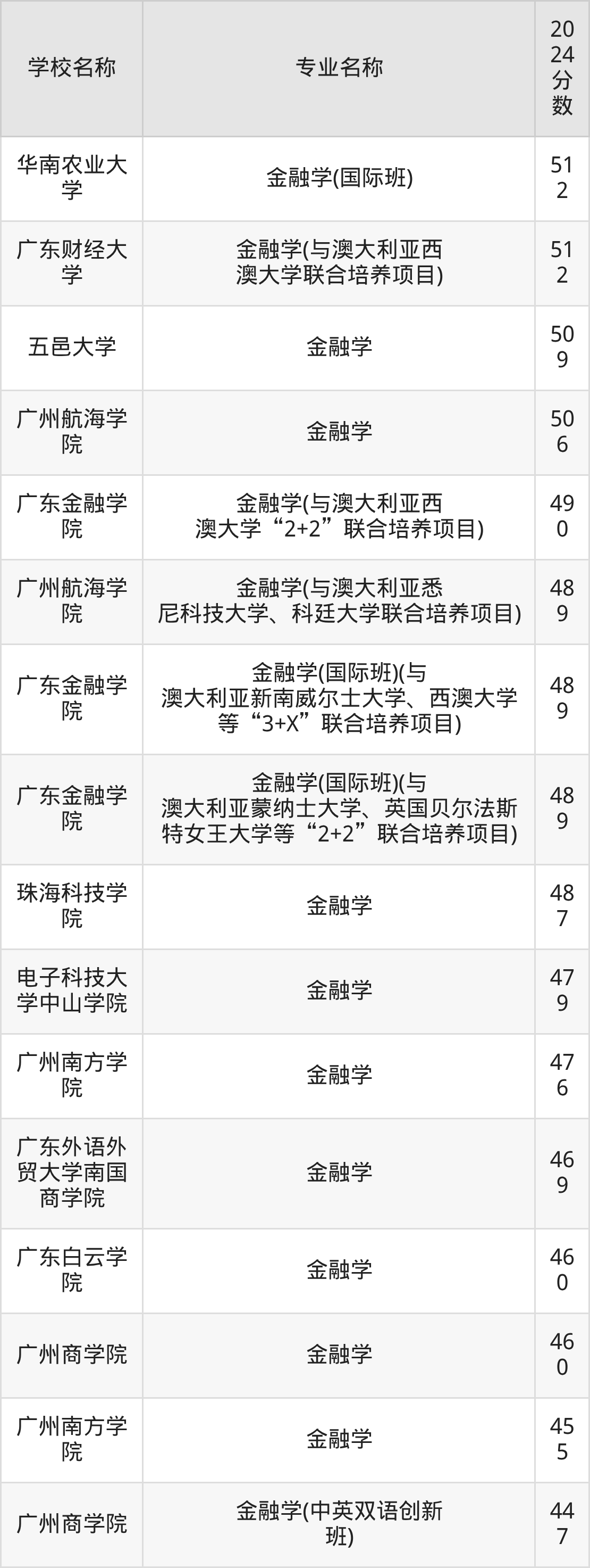 | 广州商学院 | 金融学(与澳大 利亚阿德莱德大 学联合培养项目) | 448 |