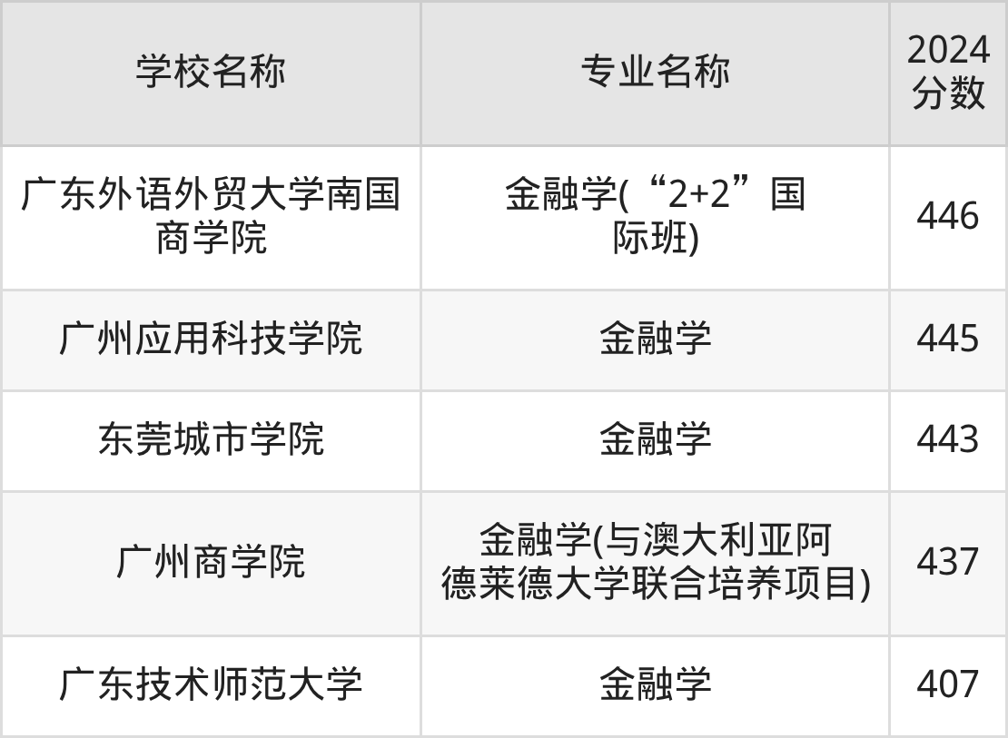 | 广东外语外贸大学南国 商学院 | 金融学 | 481 |
