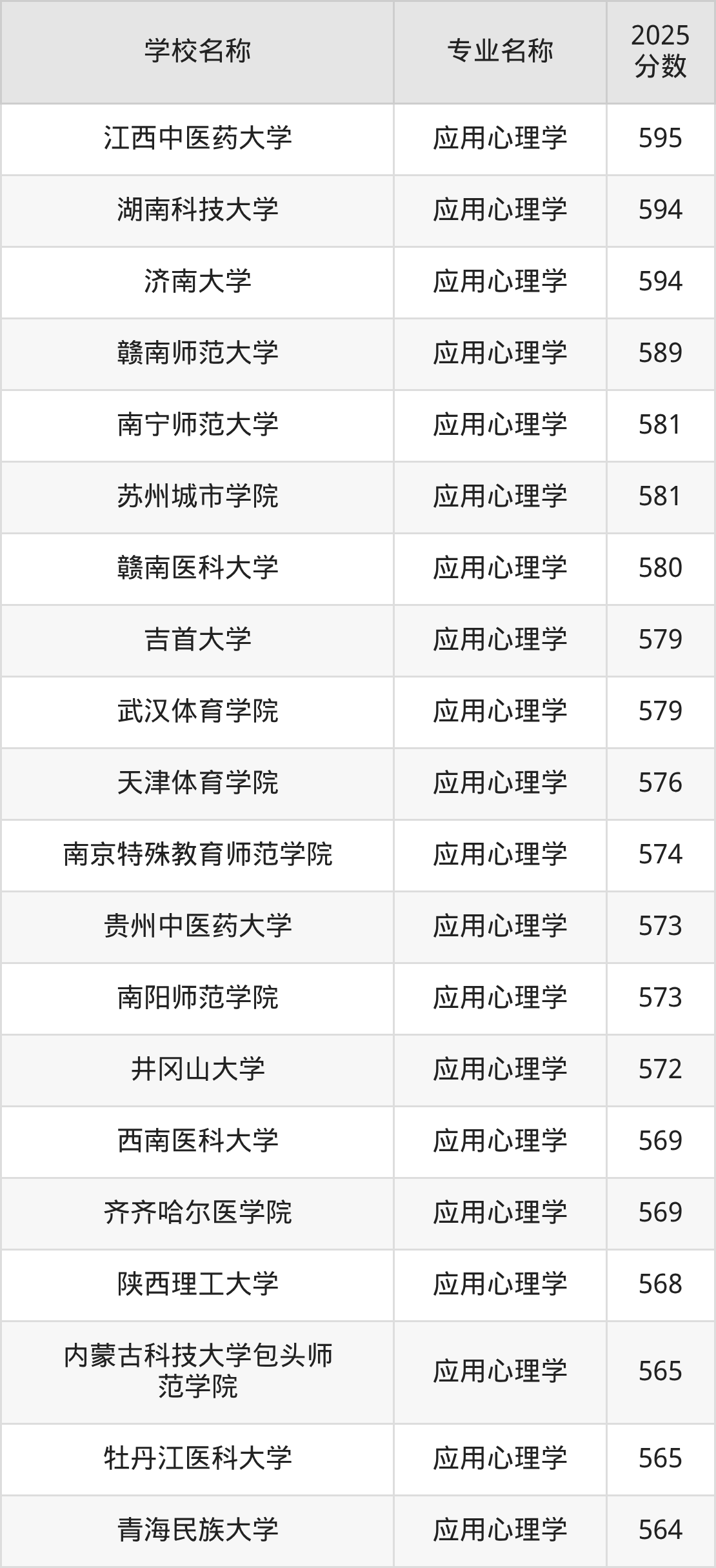 | 浙江师范大学 | 应用心理学(师 范) | 582 |