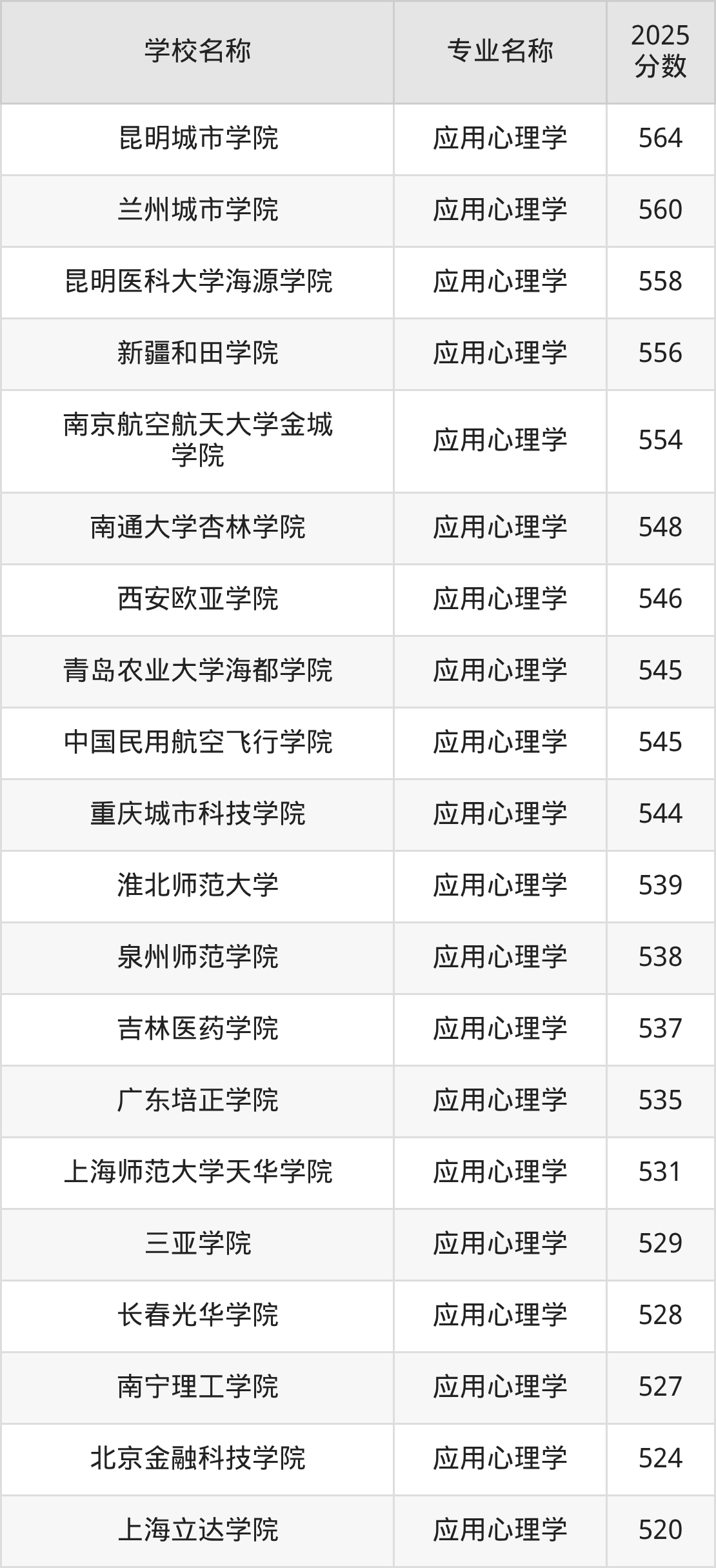 下文将为大家展示浙江省大学应用心理学专业2025年在浙江高考的最低录取分数线!