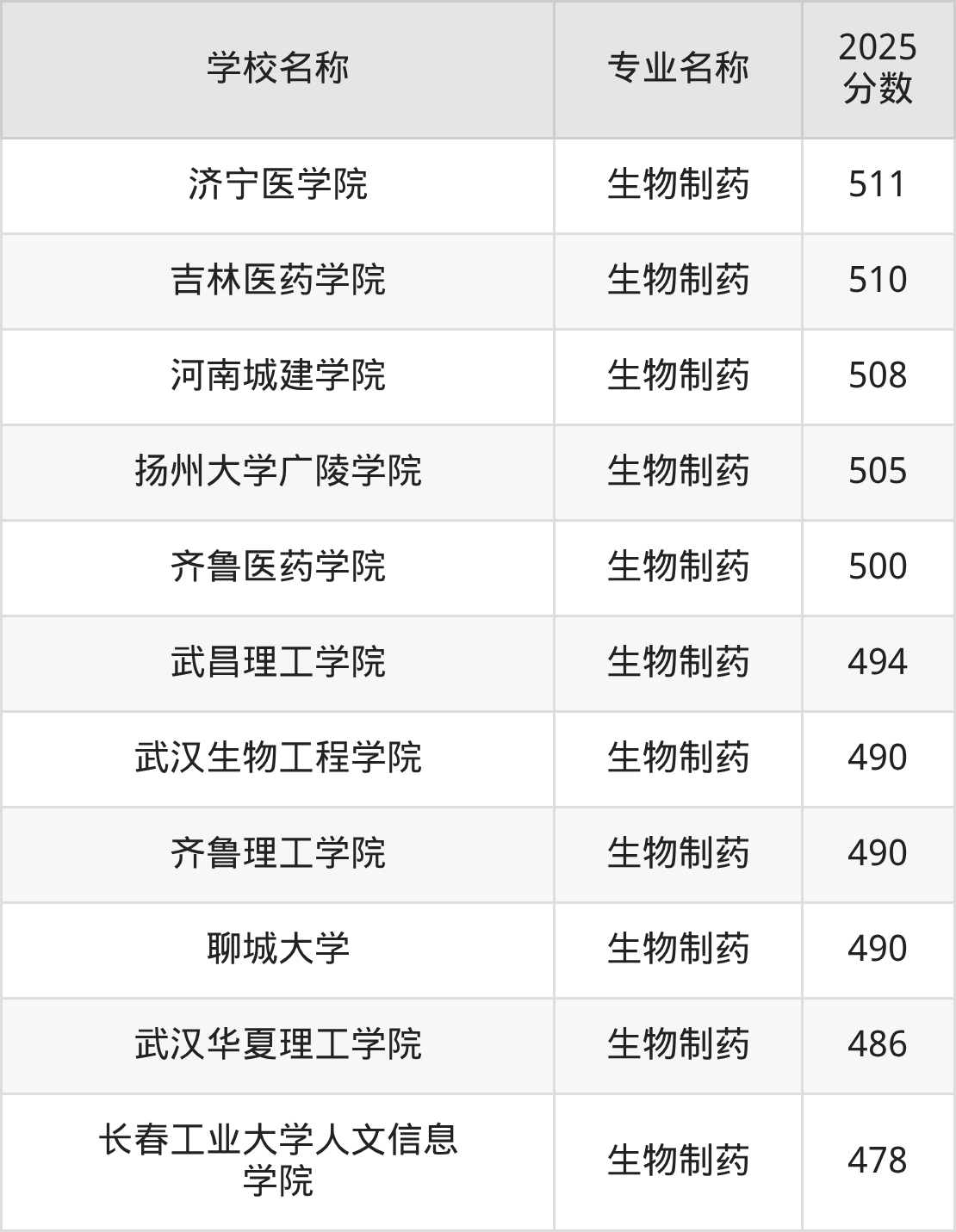 下文将为大家展示浙江省大学生物制药专业2025年在浙江高考的最低录取分数线!