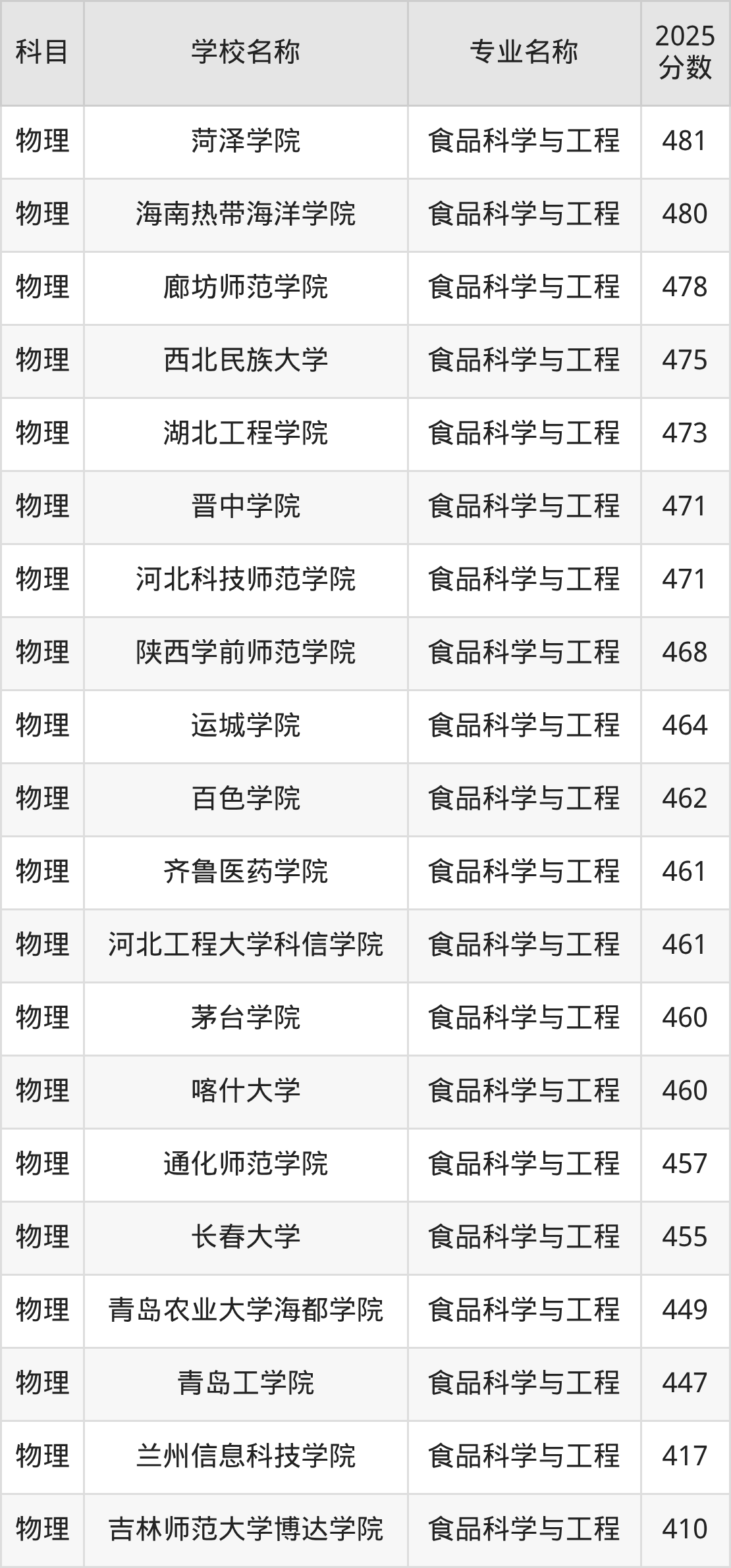 | 朝阳师范学院 | 食品科学与工程 | 466 |