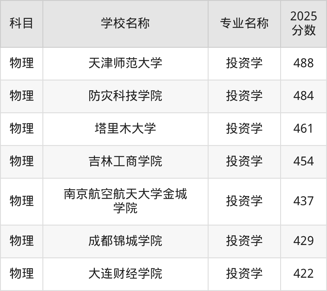 | 学校名称 | 专业名称 | 2025 分数 |