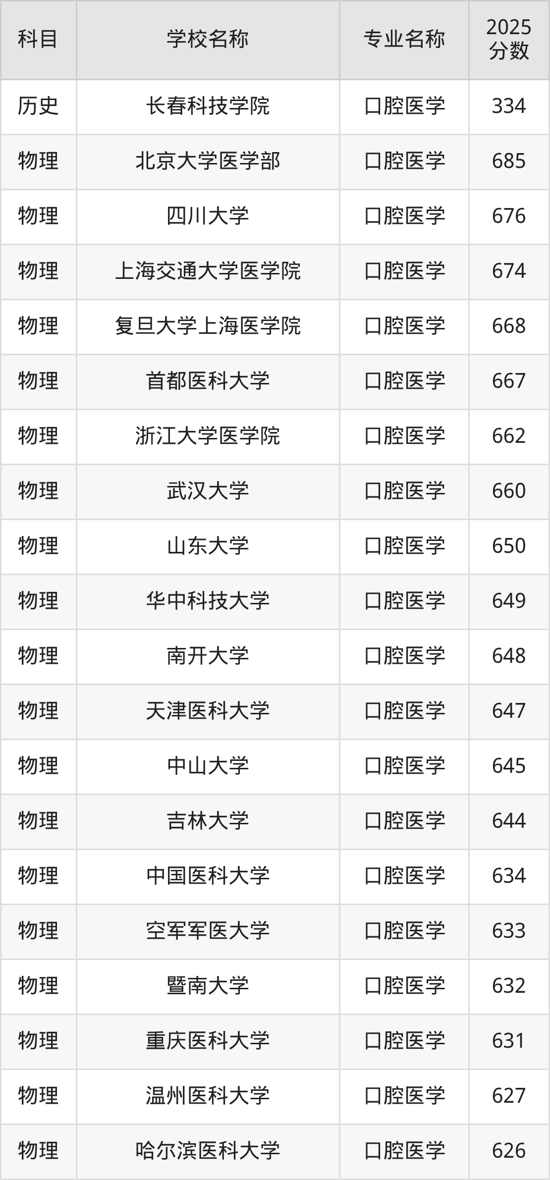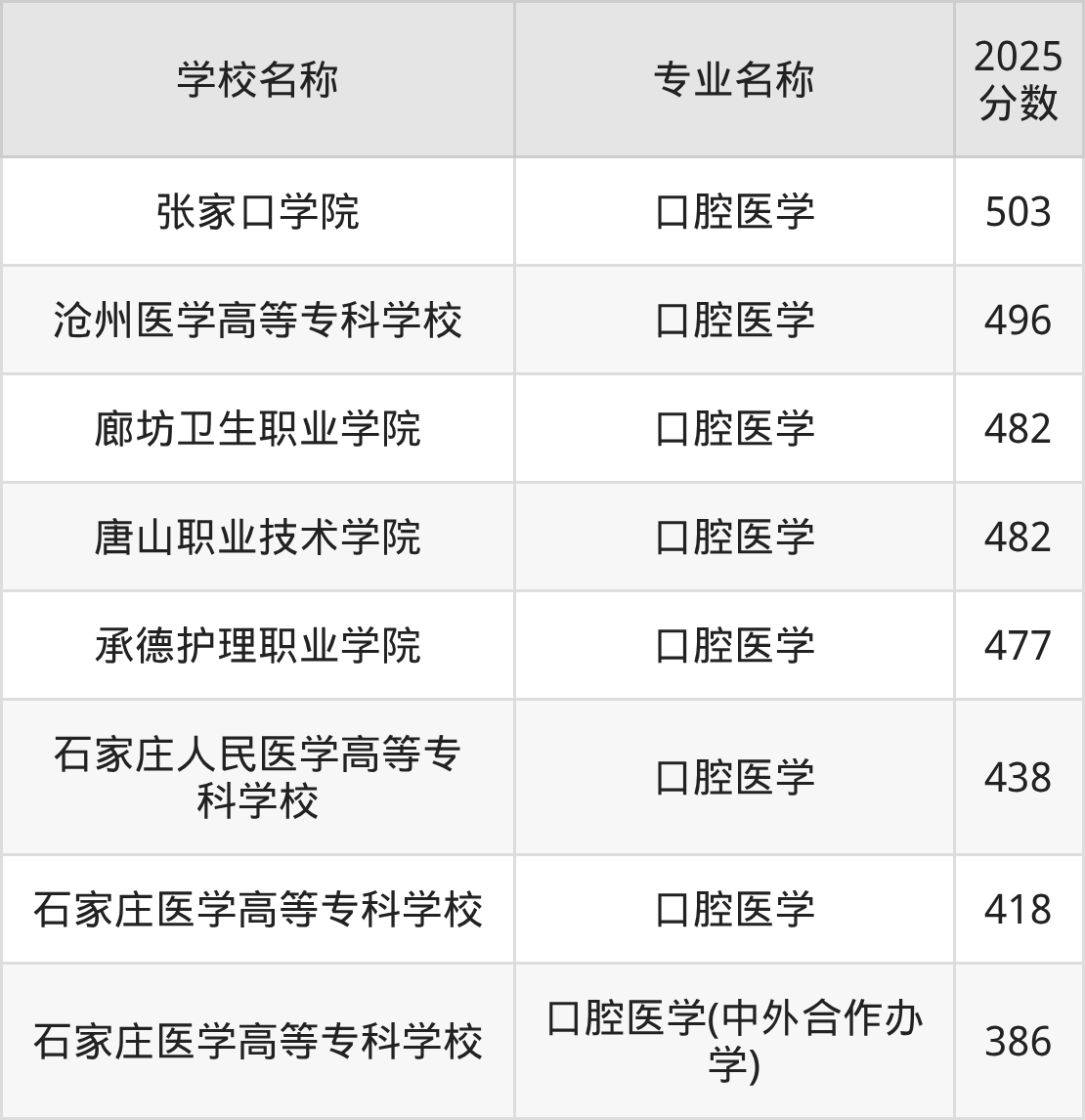 下文将为大家展示河北省大学口腔医学专业2025年在河北高考的最低录取分数线!