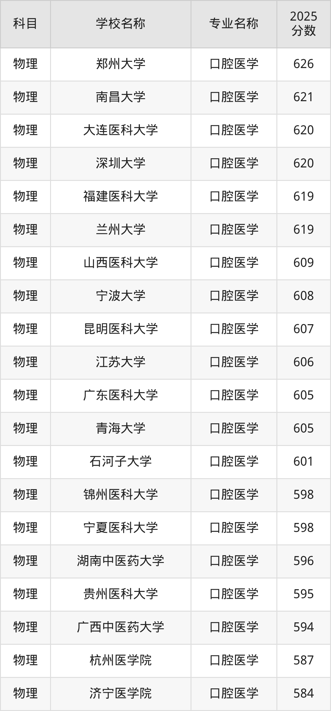 河北高考物理组:口腔医学专业的最低分是406分~612分