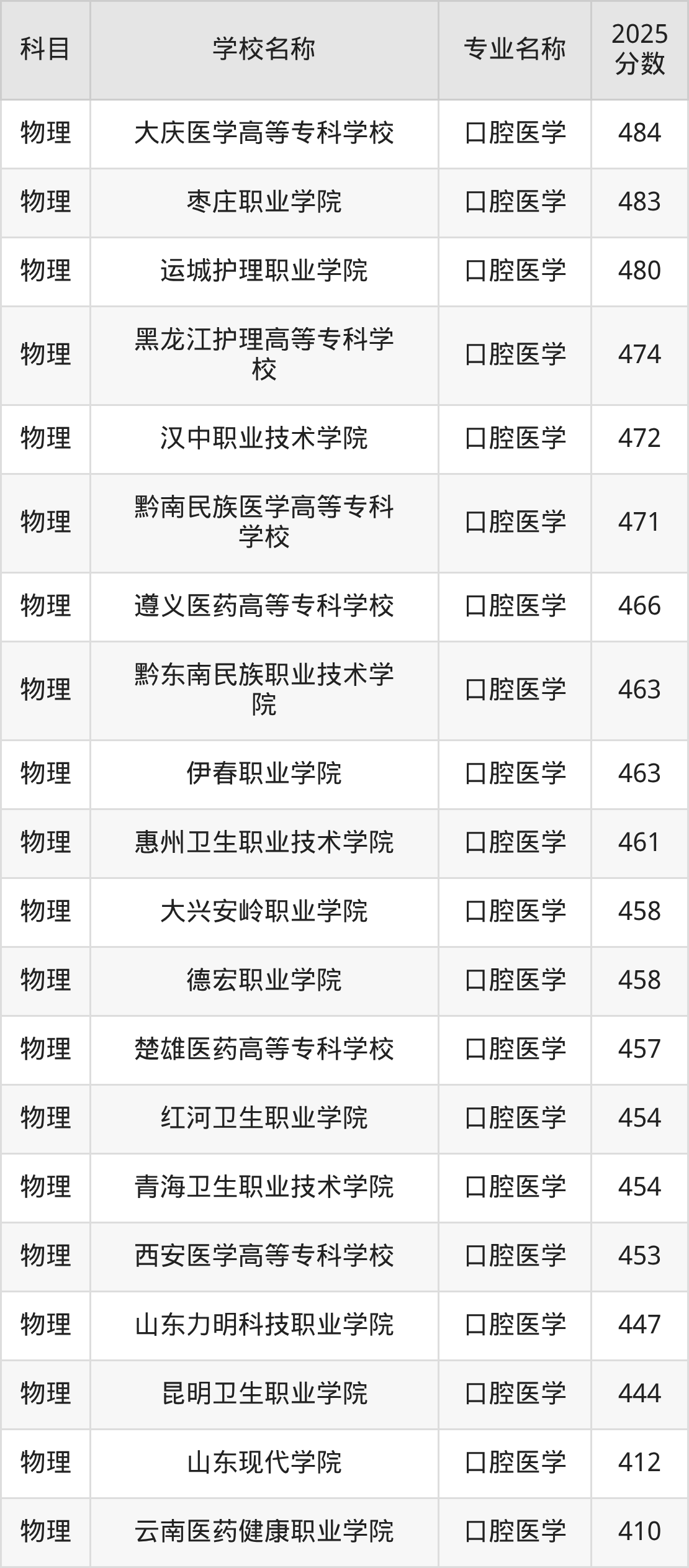 | 唐山职业技术学院 | 口腔医学 | 468 |