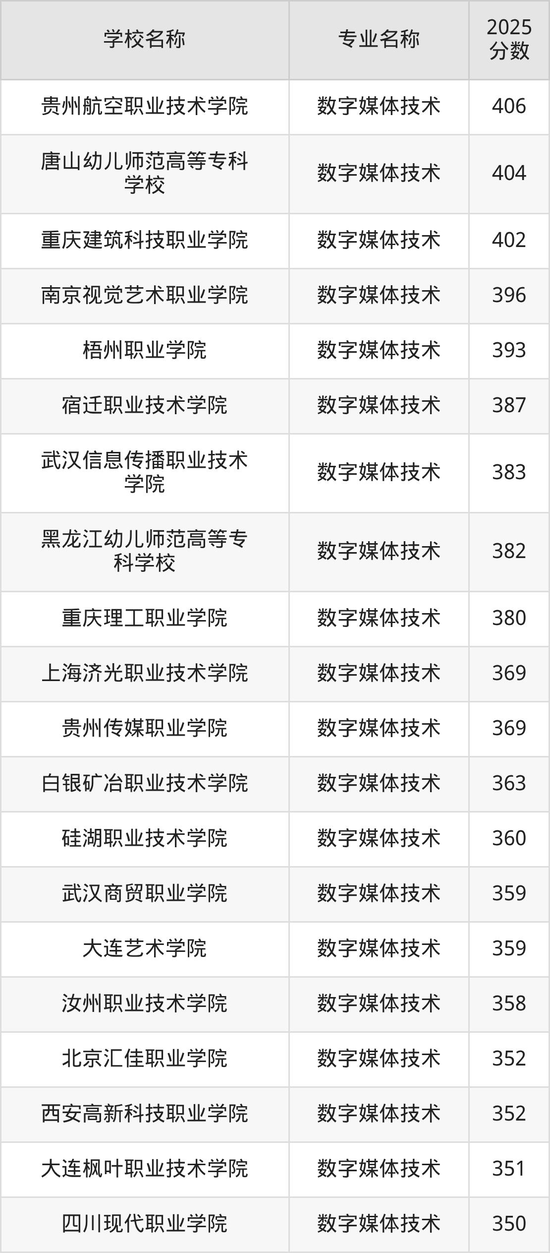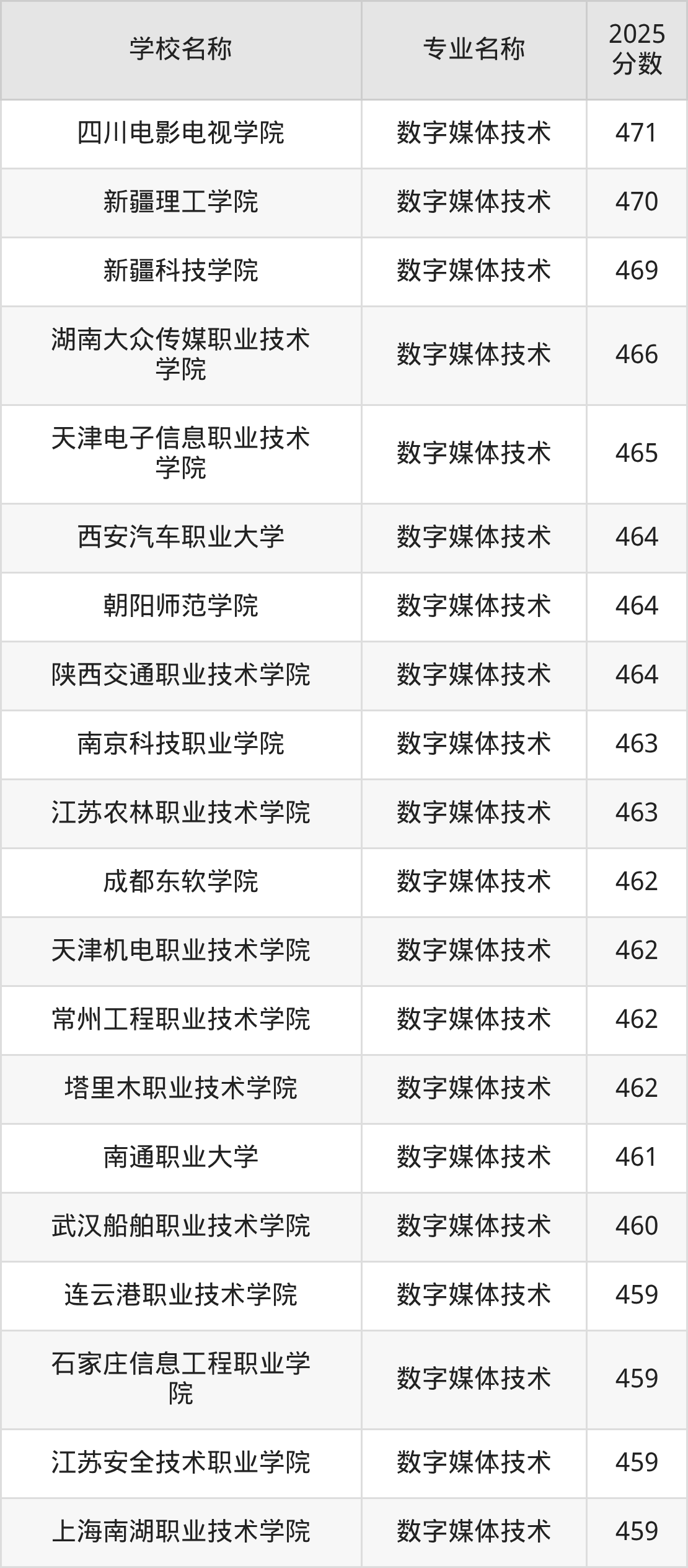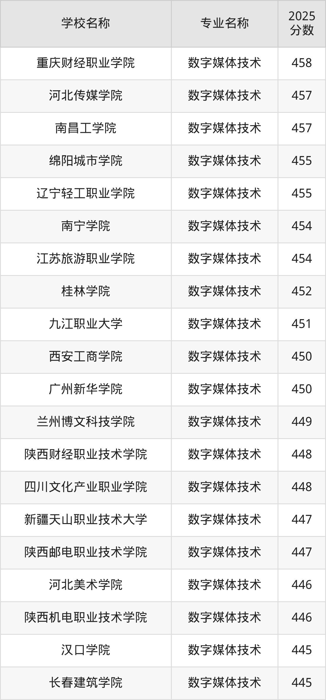 | 山东传媒职业学院 | 数字媒体技术 | 456 |