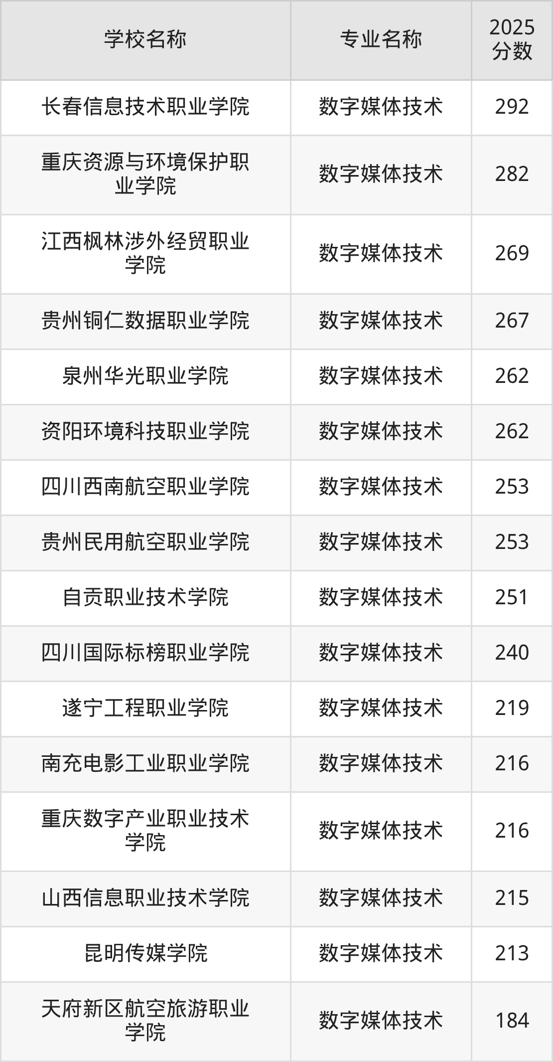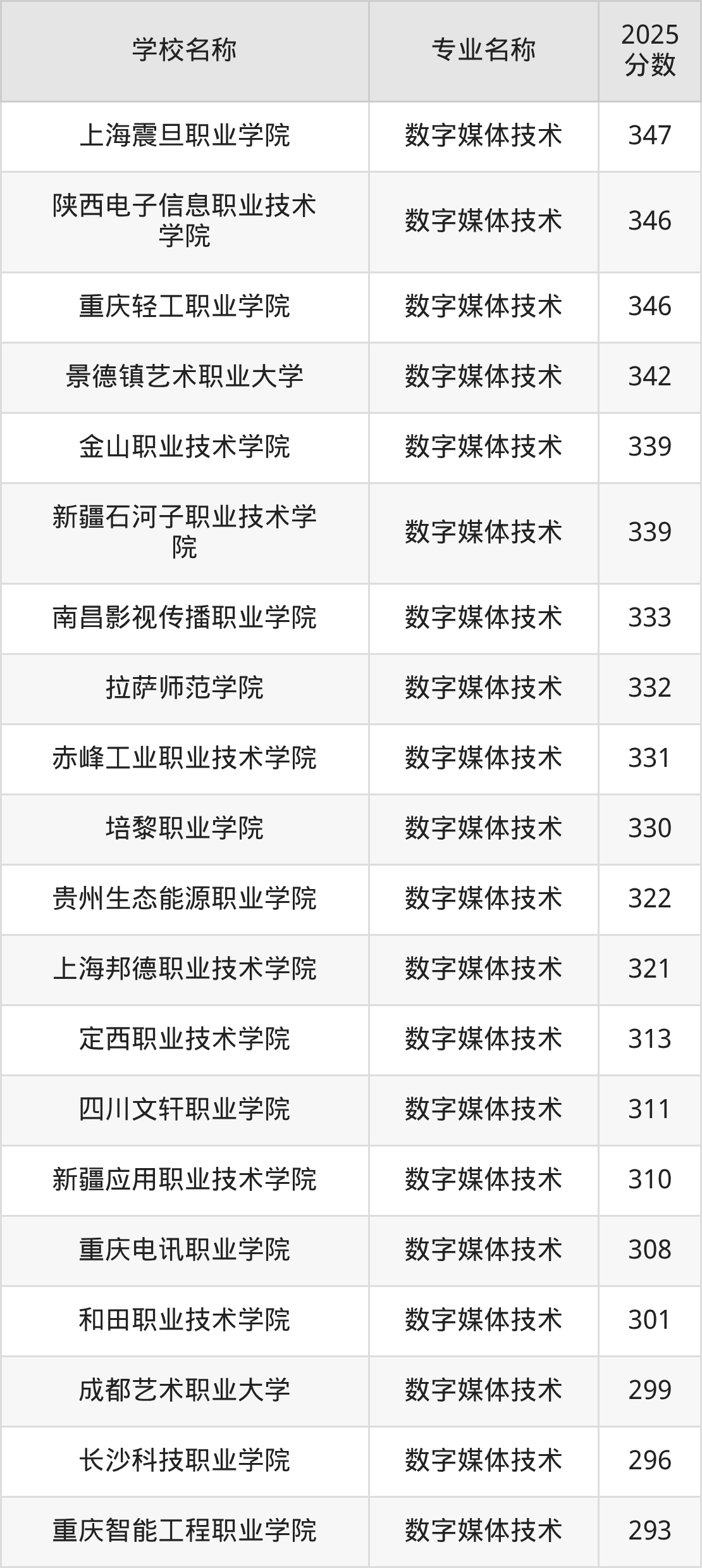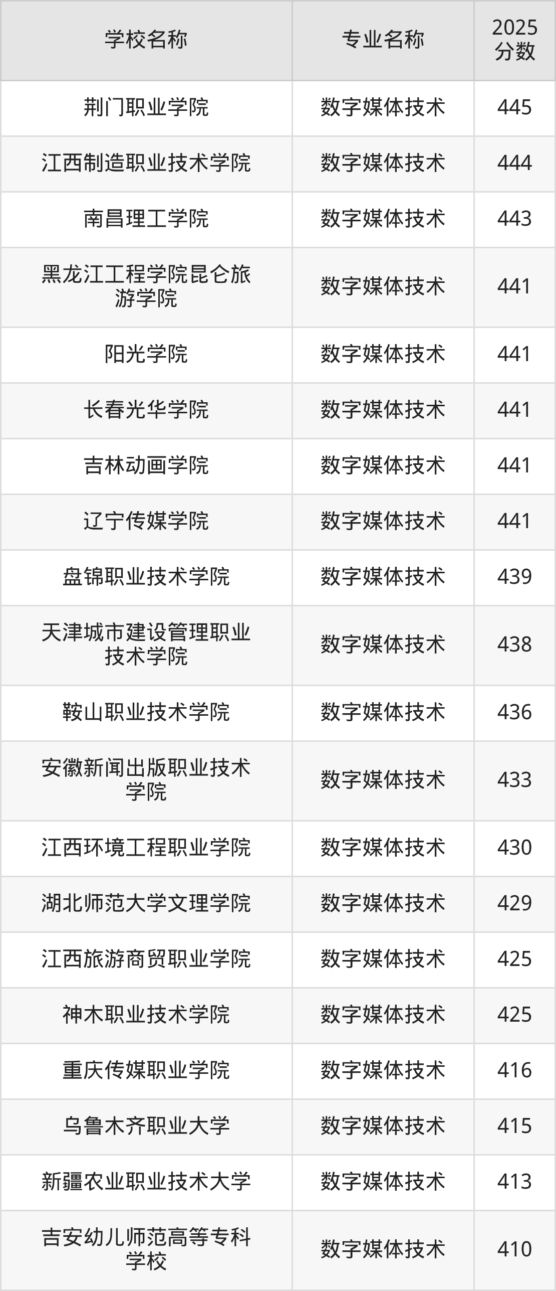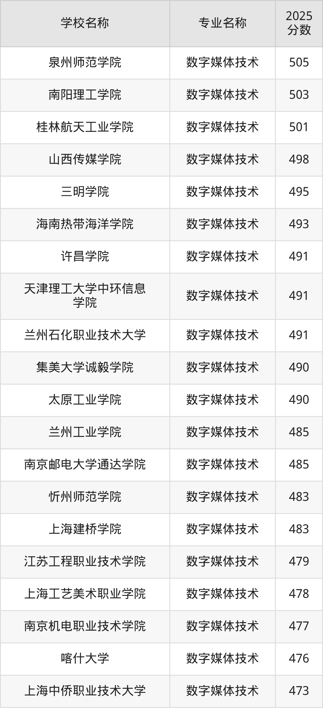 | 山东传媒职业学院 | 数字媒体技术 | 456 |