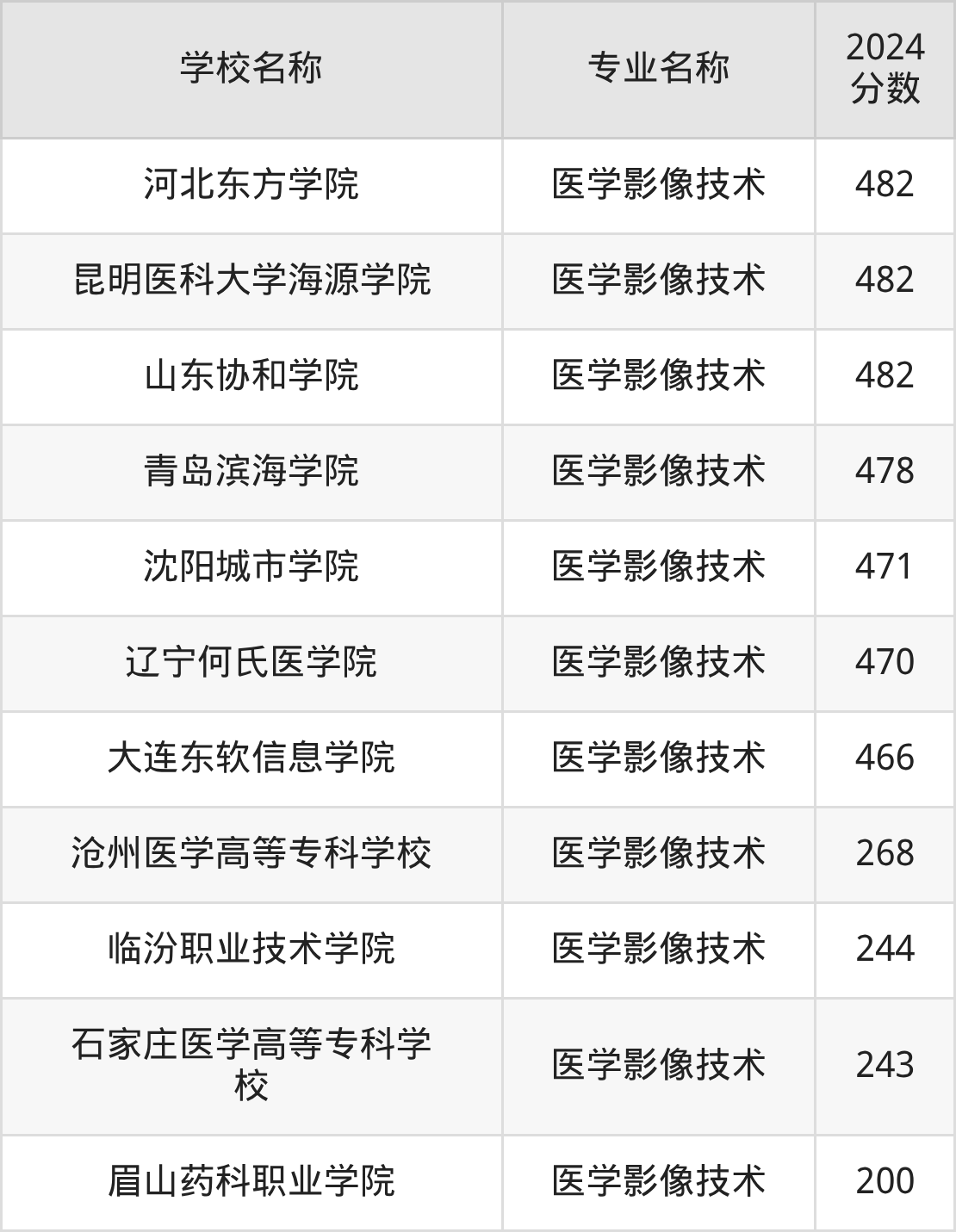 | 天津医学高等专科学校 | 医学影像技术 | 270 |