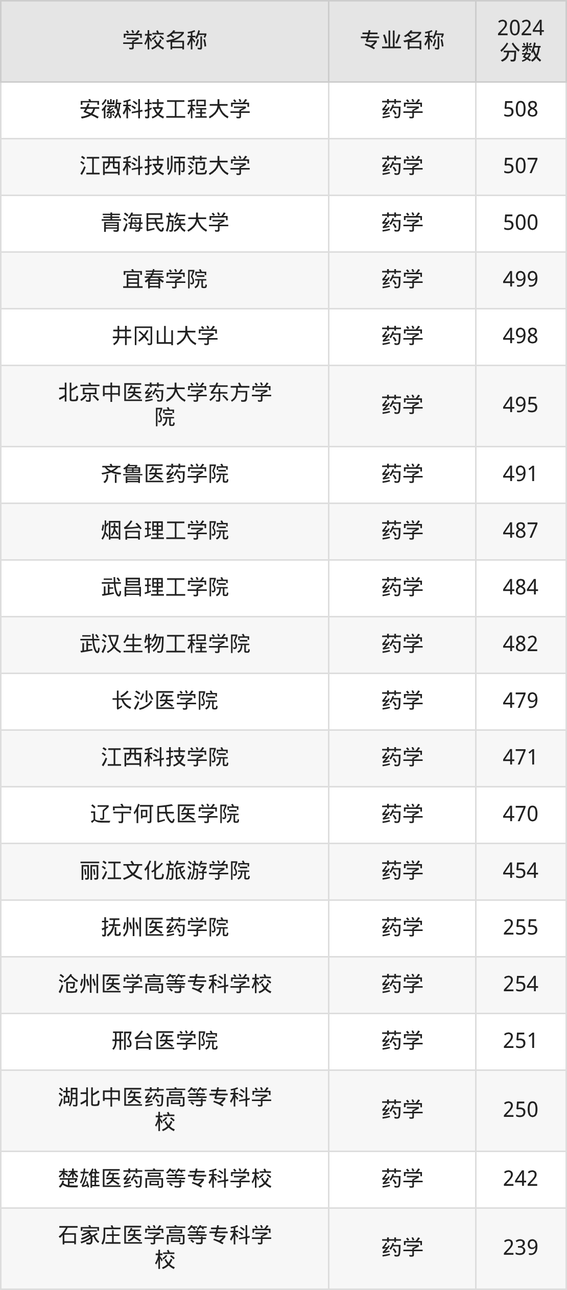 下文将为大家展示天津市大学药学专业2024年在天津高考的最低录取分数线!