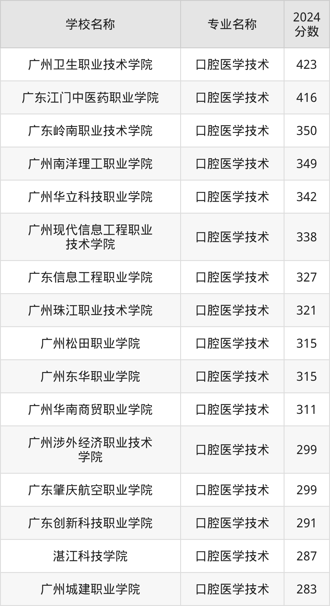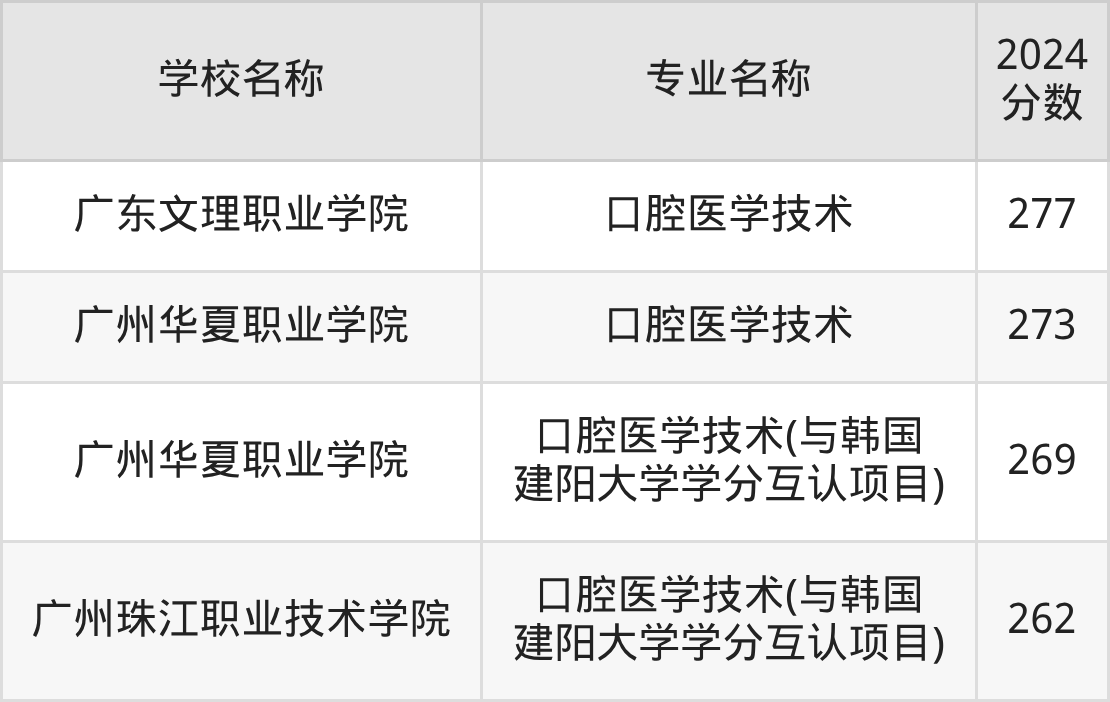 | 广州华立科技职业学院 | 口腔医学技术 | 375 |