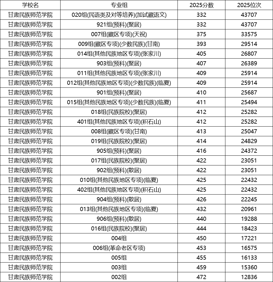 1.甘肃民族师范学院020组(民语类及对等培养)(加试藏语文)最低分:332分