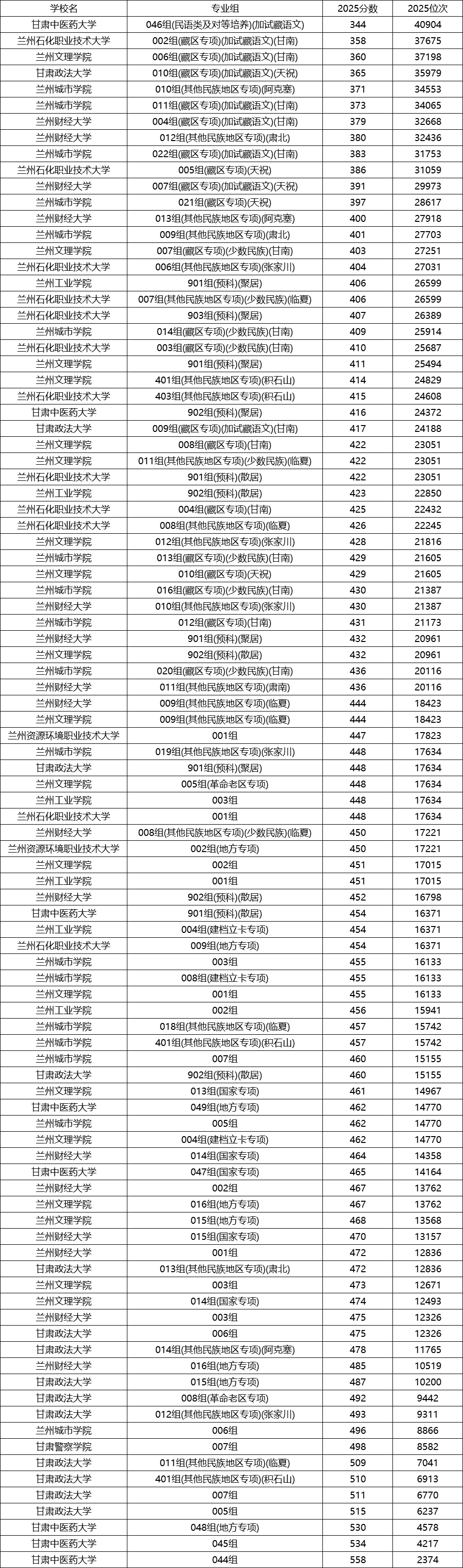 2.甘肃中医药大学046组(民语类及对等培养)(加试藏语文)最低分:344分