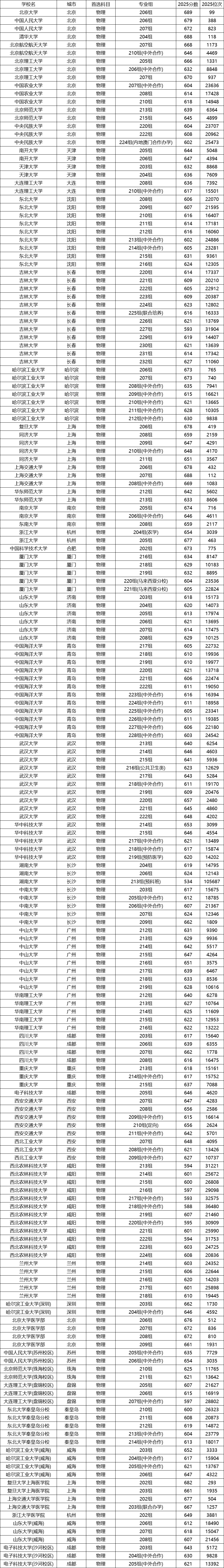 1.中山大学:物理类最低投档分为628分(专业组219),最高为651分(专业组216)。整体分数区间在628分至651分之间,显示出较强的综合实力和地域吸引力。
