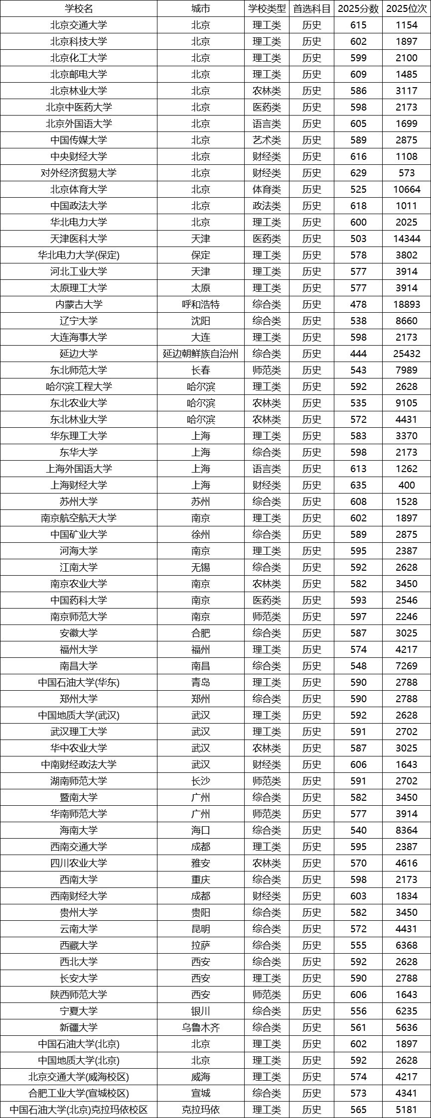 大连海事大学:投档线为598分,位次2173。该校虽以理工见长,但历史类分数不低,反映其整体声誉与就业前景。