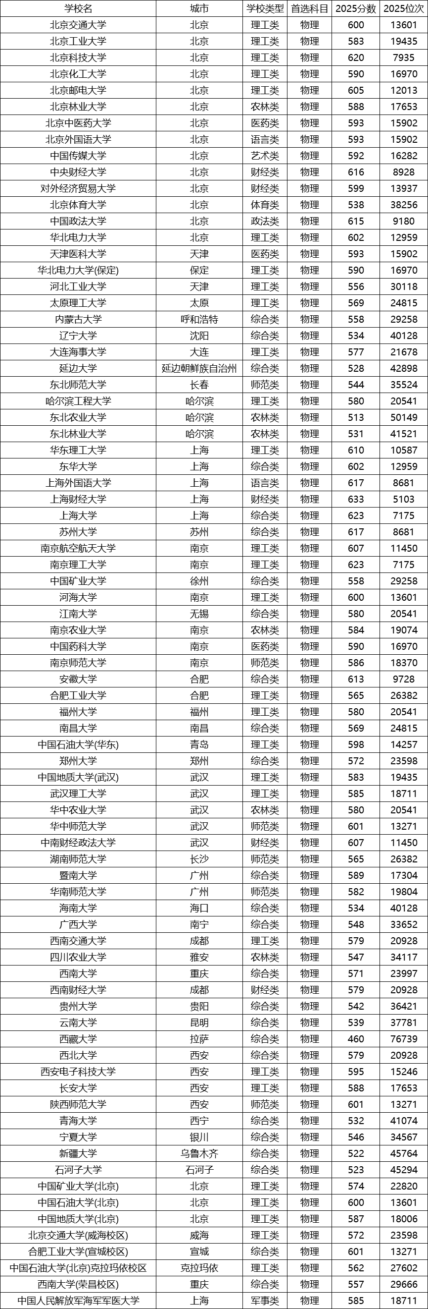 西藏大学:555分,位次6368。这些学校录取门槛较低,但考生需权衡地理位置与发展机会。