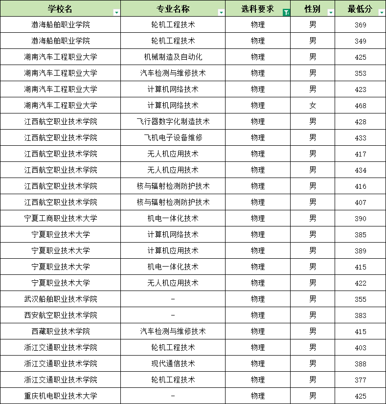 | 渤海船舶职业学院 | 物理 | 001专业组 | 436 |