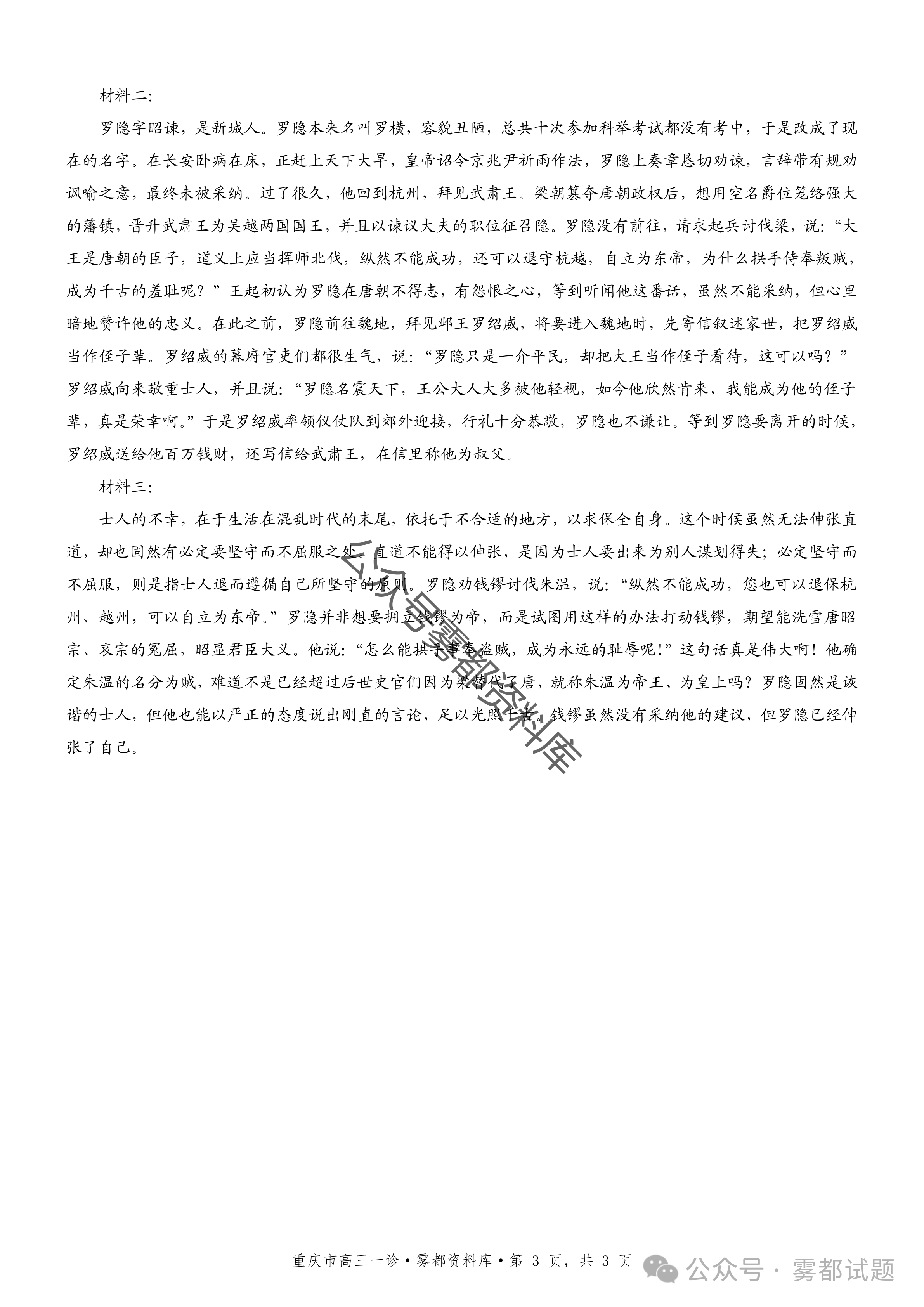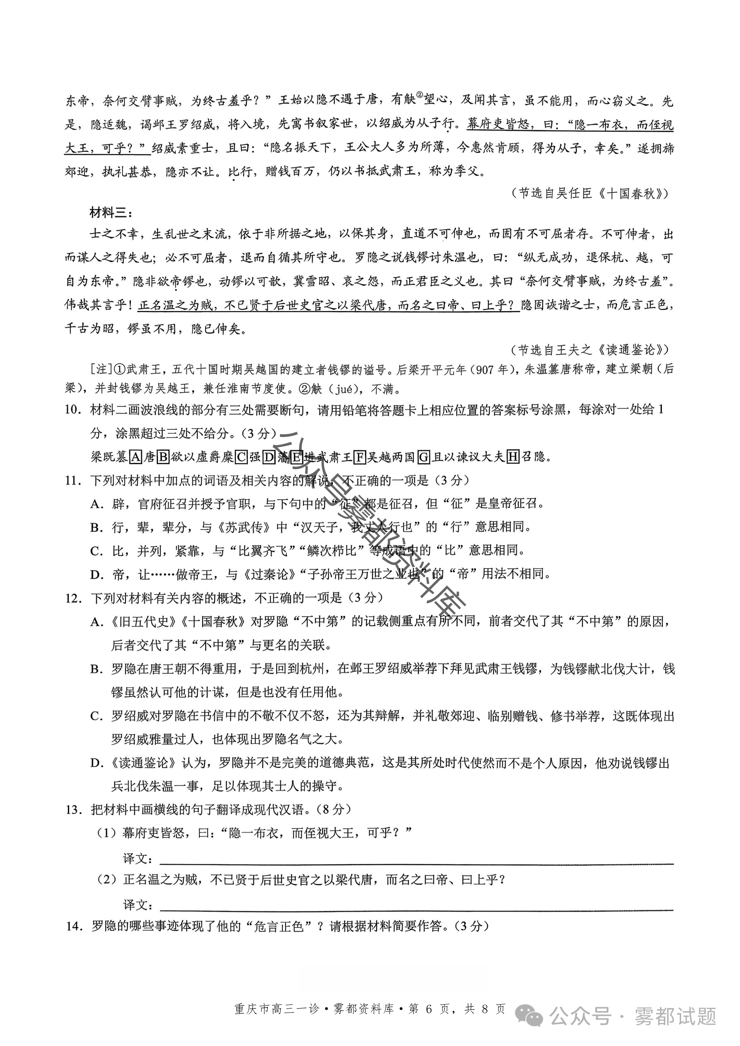 四、2026重庆市康德高三一诊历史试卷及答案