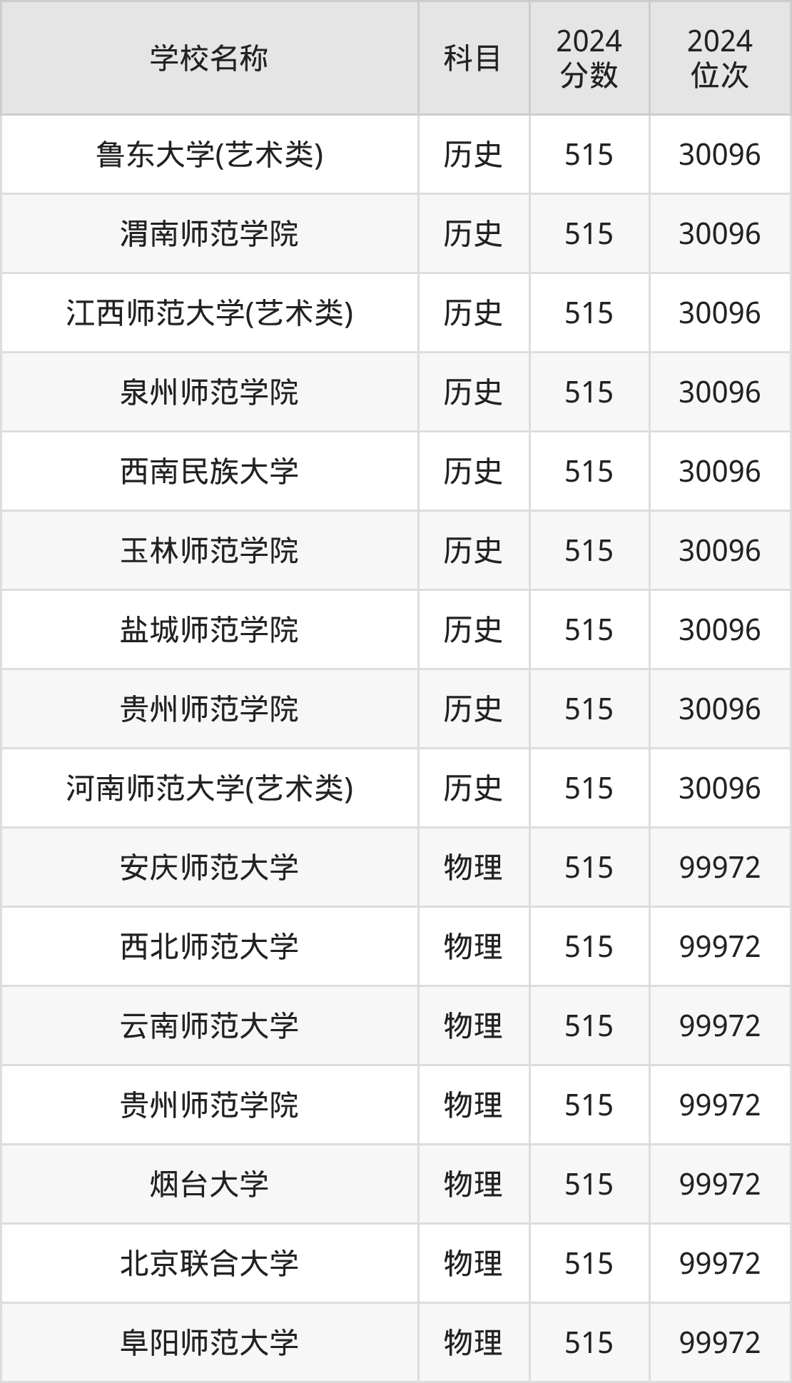 | 南昌师范学院 | 物理 | 515 | 135284 |