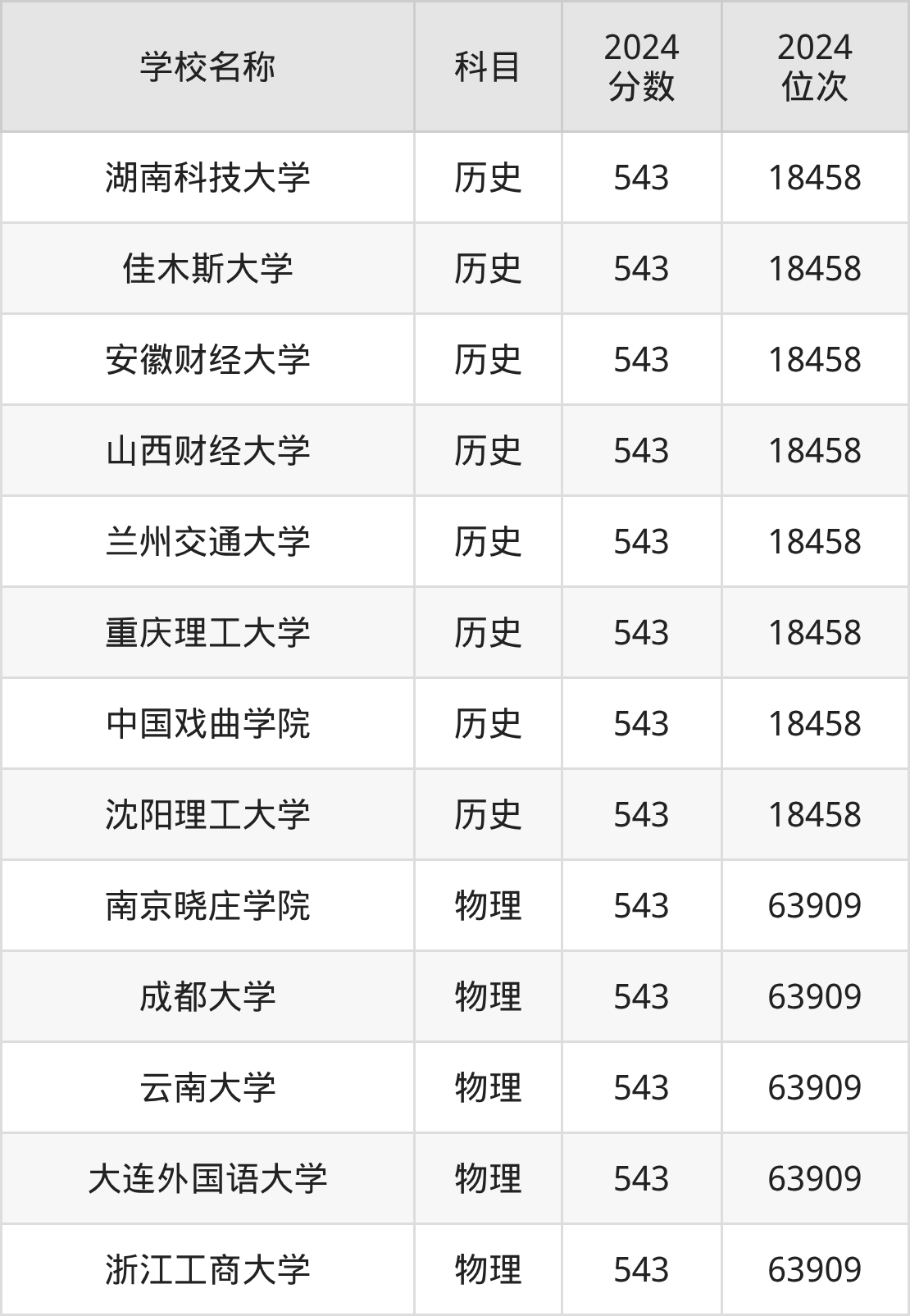 | 学校名称 | 科目 | 2025 分数 | 2025 位次 |