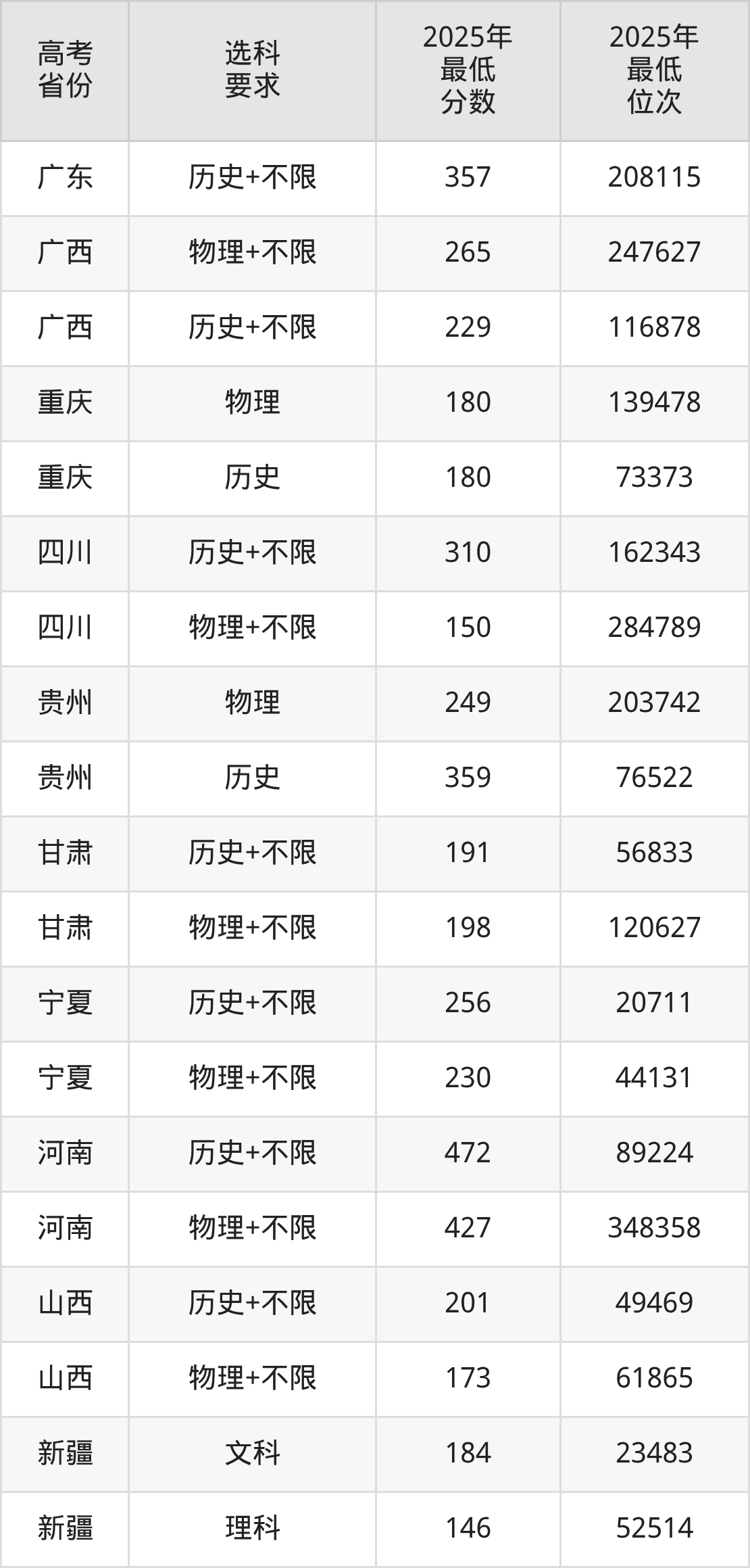 在2025年新疆高考理科招生时,公办本科收分最低的是兴安职业技术大学,最低分是148分、位次是52507位。再看西安信息职业大学,2025年在新疆理科的最低录取分数线是146分,最低位次是52514位。